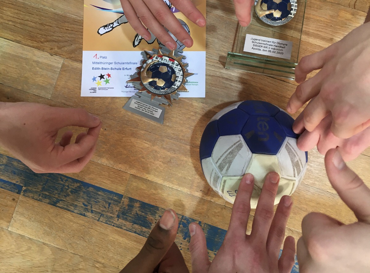 Nach drei Siegen in drei Spielen standen die WK II Handballer als souveräner Sieger des Schulamtsfinales statt. Zum Auftakt setzten sie sich mit 16:4 gegen Kölleda durch. Auch das Gymnasium Buttelstedt/Mellingen (10:8) und die Mannschaft aus Weimar (17:4) hatten den Jungs der Edith-Stein-Schule nicht viel entgegenzusetzen. Mannschaftskapitän Paul wurde zusätzlich noch zum besten Spieler des Turniers gewählt. Nun wollen sie alles daran setzen, die Erfolgsserie fortzusetzen, um sich für das Bundesfinale in Berlin zu qualifizieren.
