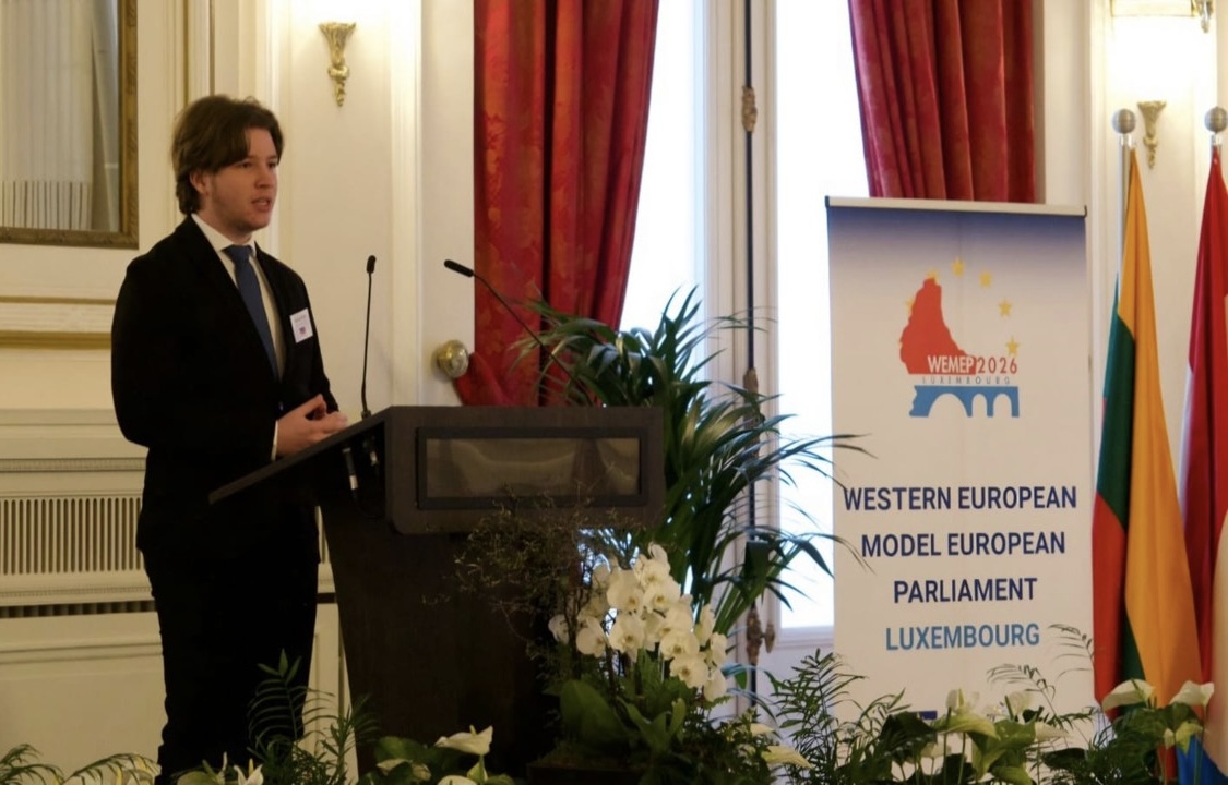 Nach seinen überzeugenden Auftritten im letzten Jahr konnte Raphael aus der 11. Klasse als ein Vertreter Deutschlands beim Western European Model Eurpean Parliament in Luxemburg teilnehmen und agierte dabei als Delegationsprecher im verantwortungsvollen Vordergrund der Gruppe.