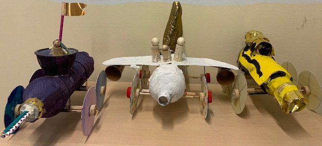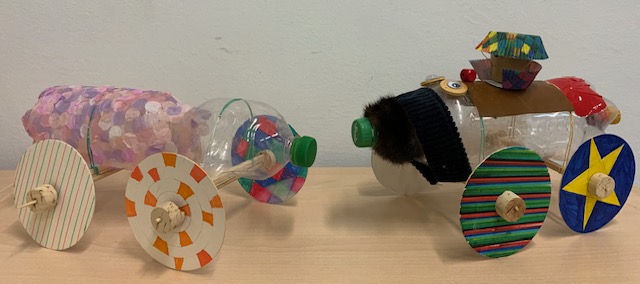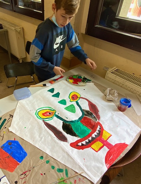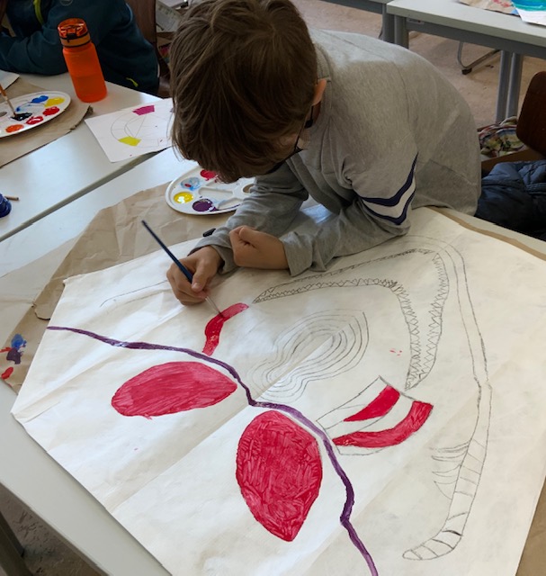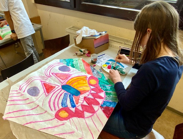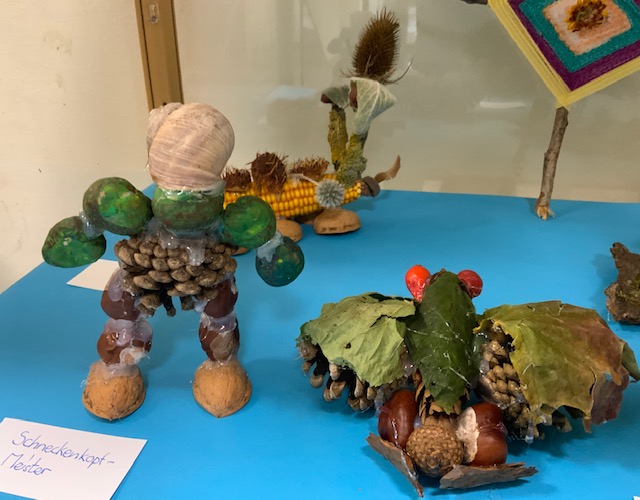 Aber wir wollen nach 20 Jahren das ganztägige fächerübergreifende künstlerische Projekt auch öffnen für neue Ideen. So baute die Klasse 5b dieses Jahr in Zusammenarbeit mit Mathe kreative Automobile aus Plastikflaschen und Bierdeckeln, deren Mittelpunkt konstruiert sein will! Die Klasse 5c setzte ebenfalls im fächerübergreifenden Rahmen Herbsteindrücke künstlerisch um, durfte beispielsweise mit Naturmaterialien experimentell drucken oder aus herbstlichen Materialien Fantasiewesen bauen, wie bereits auf der Homepage berichtet wurde.
