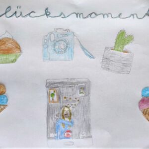 Ihre persönlichen GLÜCKSMOMENTE haben Schülerinnen und Schüler der Klassenstufen 5 und 6 festgehalten und sich damit an dem Wettbewerb des Fachbereiches Kunsterziehung beteiligt.