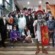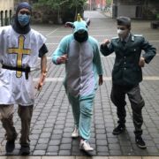 Um so verständlicher war die Sehnsucht nach etwas Abwechslung. Der Drang nach außergewöhnlicher Kostümierung war einige Abiturienten wirklich anzumerken. Ob Kindheitshelden, Zeitreisende oder Erstklässler, die Fantasie war in den einzelnen Themenbereichen grenzenlos. So sprangen zwischen Dinosaurier, Legionär und Volkspolizist auch Hippies, Einhörner, Detektive und andere Gestalten herum.