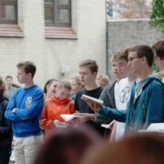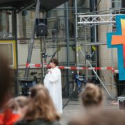 Am vergangenen Mittwoch zeigten sich auf dem Schulhof in den Morgenstunden, wie flexibel und mitreißend die ESS Gottesdienste feiern kann. Schon vorher war klar, dass es zwei Gottesdienste und nicht, wie üblich, einer sein würde. Wie im letzten Schuljahr fand er zudem auf dem Schulhof und nicht im Dom statt.