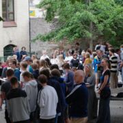 Die Technik-AG zeigte ihre große Stärke, indem sie in 20 Minuten alle Kabel und selbst das Kreuz komplett nach drinnen verlegte. Der Gottesdienst, der folgte, war voller Begeisterung und Freude, und sehr mitreißend, nicht zuletzt durch die Musik. Pfarrer Lindner schlug vor, dass die Klassen diese Begeisterung bewahren und den mitgebrachten frischen Wind weitertragen sollen in alle Klassen und Räume der Schule.