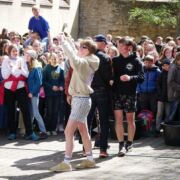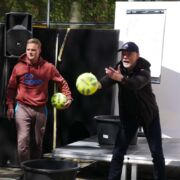 Dafür hatten die zukünftigen Absolventen ordentlich ins Zeug gelegt und ein unterhaltsames Programm auf die Bühne gebracht, bei welchem u.a. einige Lehrer gegen die Expert*innen des Jahrgangs antreten durften. Über 90 Minuten gab es ein Potpourri aus Montagsmaler, Voice of ESS, Obstacle Team Run, ENTM, Pensionärs Pong und Dance Academy. Da die Schüler das abschließende Tauziehen gewinnen konnten, waren auch die teils verlorenen Spiele schnell vergessen und unter großem Jubel zogen sie aus dem Schulgelände aus. Wenn auch nur kurz, denn das Aufräumen und die Zeugnisausgabe standen noch auf dem Programm, bevor sich dann die meisten wohl endlich eine Mütze Schlaf gegönnt haben.