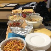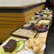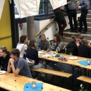 Viele der Präsentierenden nutzen natürlich auch das Ehemaligentreffen am nächsten Tag für einen weiteren Austausch untereinander. Aus unterschiedlichsten Jahrgängen kamen Absolventen der ESS im Foyer und auf den Hof zusammen, teilweise auch mit dem jüngsten Nachwuchs, um in Erinnerungen zu schwelgen und den anwesenden Lehrkräften über den eigenen Werdegang zu berichten. Die 11er und 12er hatten für den entsprechenden Rahmen ein tolles Kuchen- und Salatbuffet vorbereitet, Herr Lehmann hielt den Grill über Stunden am Laufen und sorgte für Nachschub und weitere Lehrerinnen schenkten Getränke aus. Danke an alle fleißigen Helfer, die Anwesenden wussten das kulinarische Angebot auf jeden Fall zu schätzen.