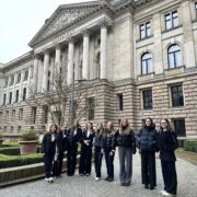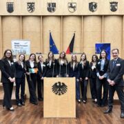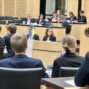 Am Montag ging es spannend weiter. Gemeinsam mit allen Delegationen haben wir die Mecklenburgische Landesvertretung in den Ministergärten besucht. Es war für die Delegierten ein beeindruckendes Erlebnis, zum ersten Mal in einem solchen Gebäude zu sein. Nach der feierlichen Eröffnung der diesjährigen Sitzungswoche durch Charlotte fand eine Podiumsdiskussion statt und schließlich wurden die Delegationen vorgestellt. Neben den Hannoverisch-Kroatischen Krawattenbindern und den Hamburger Macarena-Sängern tanzen die Erfurter zu dem altbekannten Cotton-Eye Joe, der ursprünglich aus Irland stammt. Die 8 Mädchen erhielten dafür einen verdienten Applaus. Nach diesem tollen Auftakt ging es dann aber wirklich mit der (harten) Arbeit der Delegierten los. Das Plenum teilte sich schnell in seine Ausschüsse und fand sich in ihrem Tagungsort ein. Nach einem leckeren Mittagessen wurde hier nun hitzig debattiert, formuliert und abgestimmt. Am Ende des Tages war das kleine Licht des MEP entflammt. Auch am zweiten Tag der Ausschussarbeit wurde konzentriert gearbeitet. Den Zeitdruck ließen sich die Delegierten hier allerdings nicht anmerken und brachten ihre Resolutionen in die Finalisierung. Am Abend fand dann noch das beliebte Lobbying statt, bei dem sich nun alle über die gedruckten Resolutionen unterhalten und debattieren konnten. Welche Angriffspunkte finde ich? Was ist nicht vielleicht doch ganz gut? Bis tief in die Nacht wurden noch Reden für die kommende Plenardebatte formuliert.