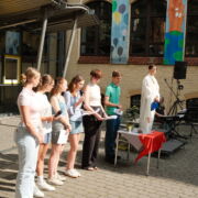 Nachdem der Schuljahresanfangsgottesdienst im Dom buchstäblich ins Wasser gefallen ist wurde der gemeinsame Auftakt zum Schuljahr um ein paar Tage verschoben und kurzerhand in den Schulhof verlegt.