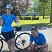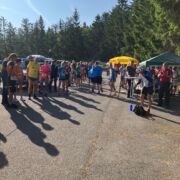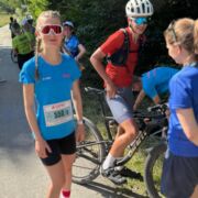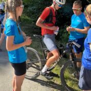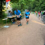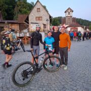 Mittlerweile ist es 2:45 Uhr und am „Kaffeetrichter“ stehen pünktlich und hochmotiviert die ersten Einsatzkräfte des Tages bereit zur Abfahrt. Katja, Tim und Luis beladen den Bus und auf geht es nach Blankenstein. Im Morgengrauen wird der Transponder zur Zeitmessung aktiviert ein traditioneller Staffelstein gesucht (dieser muss die gesamte Strecke mitgeführt werden) und Luis sichtet und erklärt die Inhalte seines bis zum Platzen gepackten Rucksacks. Gels jedweder Couleur, Carb-Drinks, Stilles Wasser, Riegel und eine große Tüte Gummibärchen sind Inhalt seiner Wundertüte. Er wird es brauchen, schließlich ist er mal ein stiller, mal ein lauter, aber immer ein hilfreicher Laufbegleiter auf dem Rad über 15 Stunden lang.
