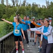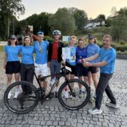 Der Zielsprecher ruft durch das Mikrophon: „Die Staffel 550; „Rennsteinläufer“ sind im Anmarsch!“ Schon biegt Luis auf dem Rad um die Ecke. Alle bilden nun eine Traube und laufen ein letztes Mal voller Stolz, erschöpft aber überglücklich nach 15 Stunden 20 Minuten und 30 Sekunden ZUSAMMEN durch den Torbogen und über die Ziellinie.