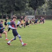 Ein Woche später startete wiederum in Jena die 7er Liga der U8-U14. In der U8 nur mit einer Spielerin vertreten konnte zumindest in der U10 und U12 eine halbe Mannschaft in jeweiligen Spielgemeinschaften antreten und erste Spielpraxis sammeln. Die Tatsache, dass im Vorfeld aufgrund der Platzsperrung kein einziges richtiges Training auf Rasen stattgefunden hat, hat die etwas dünne Personaldecke sicher weiter befeuert. Dafür stand in der U14 ein komplettes Team auf dem Platz und auch hier hieß es erstmal reinschnuppern. Schließlich ist die halbe Mannschaft aus der U12 hochgerückt und musste sich mit den Herausforderungen des großen Platzes zunächst vertraut machen. Das gelang Ihnen allerdings sehr gut. Schon im ersten Spiel brachte man die physisch überlegenen Hallenser an den Rande einer Niederlage gab jedoch den Sieg durch einen technischen Fehler aus der Hand. Gegen die SG Leipzig sah es dann deutlich besser aus und der erste Sieg der Saison wurde eingefahren. Im letzten Spiel ging es gegen die bis dato ungeschlagene SG Dresden/Jena. Zur Freude des Trainers Lennard Wiltzsch überzeugte vor allem die Defensive, während im Angriff die schnellen Spieler*innen durch gute Offloads in Szene gesetzt wurden. Der knappe, aber verdiente Sieg wurde umjubelt und auch wenn es aufgrund der Punktedifferenz letztlich nur zu Platz zwei reichte, waren alle höchst zufrieden mit dem Saisonauftakt.