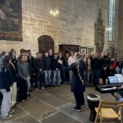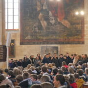 Der VoicESS-Kammerchor sang während der Kommunion von der Sängerempore aus ein Werk der italienischen Renaissance – eine zarte Klangpracht, die leider teilweise im Stimmengewirr des Kirchenraums unterging. Zum Abschluss erklang feierlich Johann Sebastian Bachs Fuge in g-Moll (BWV 578), virtuos gespielt von Lorenz Weber (10b) an der Orgel. So verband sich Musik, Spiritualität und Schulgemeinschaft zu einer eindrucksvollen Feier, die noch lange nachklang.