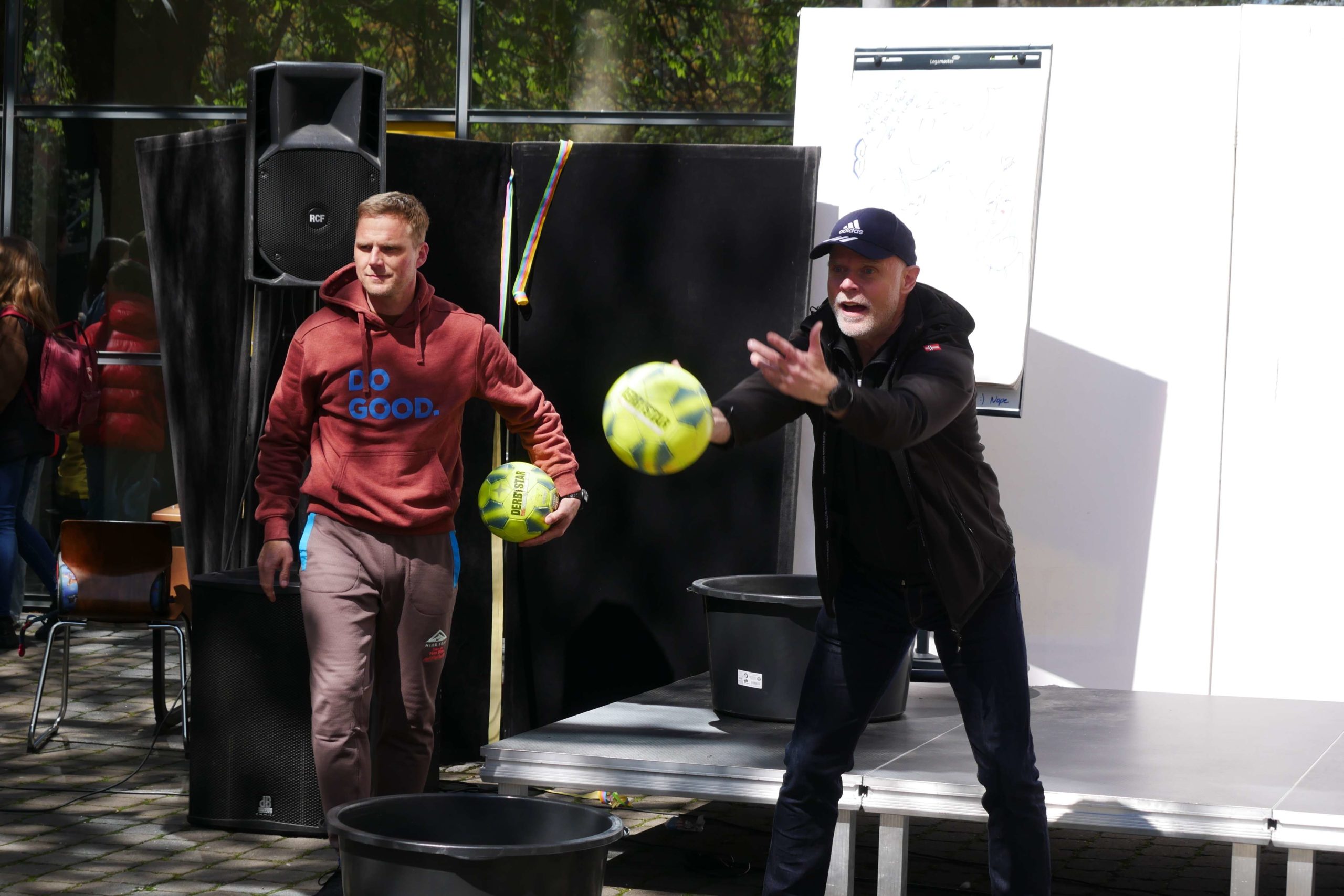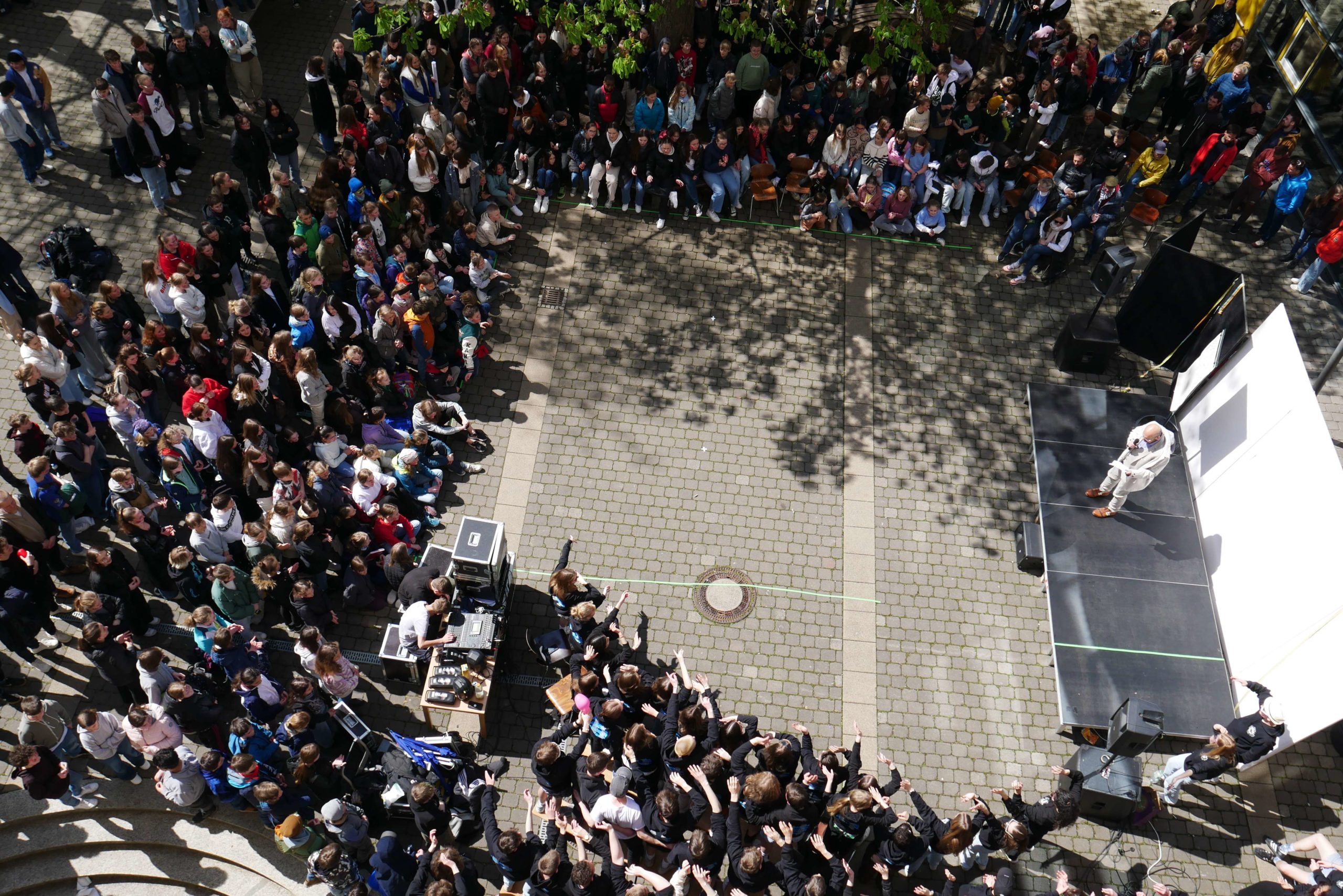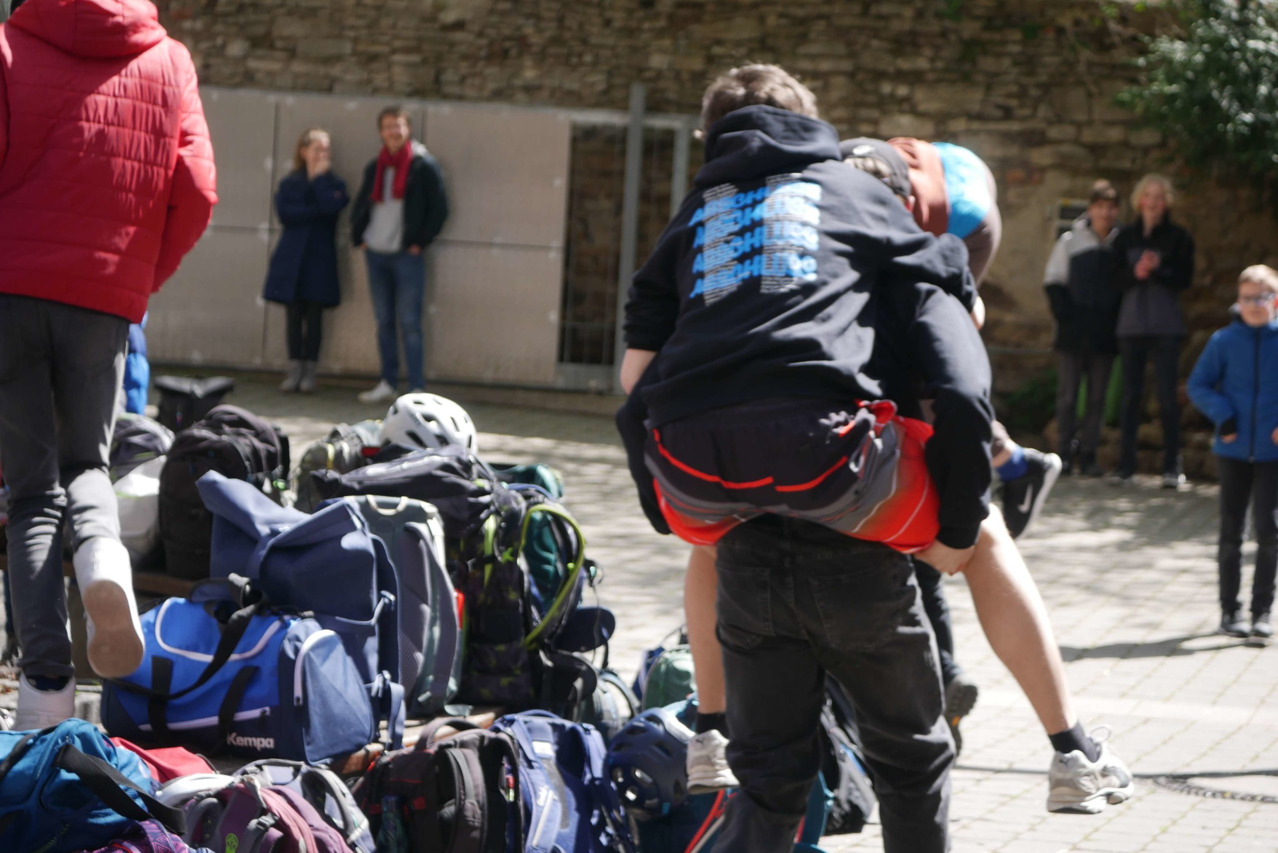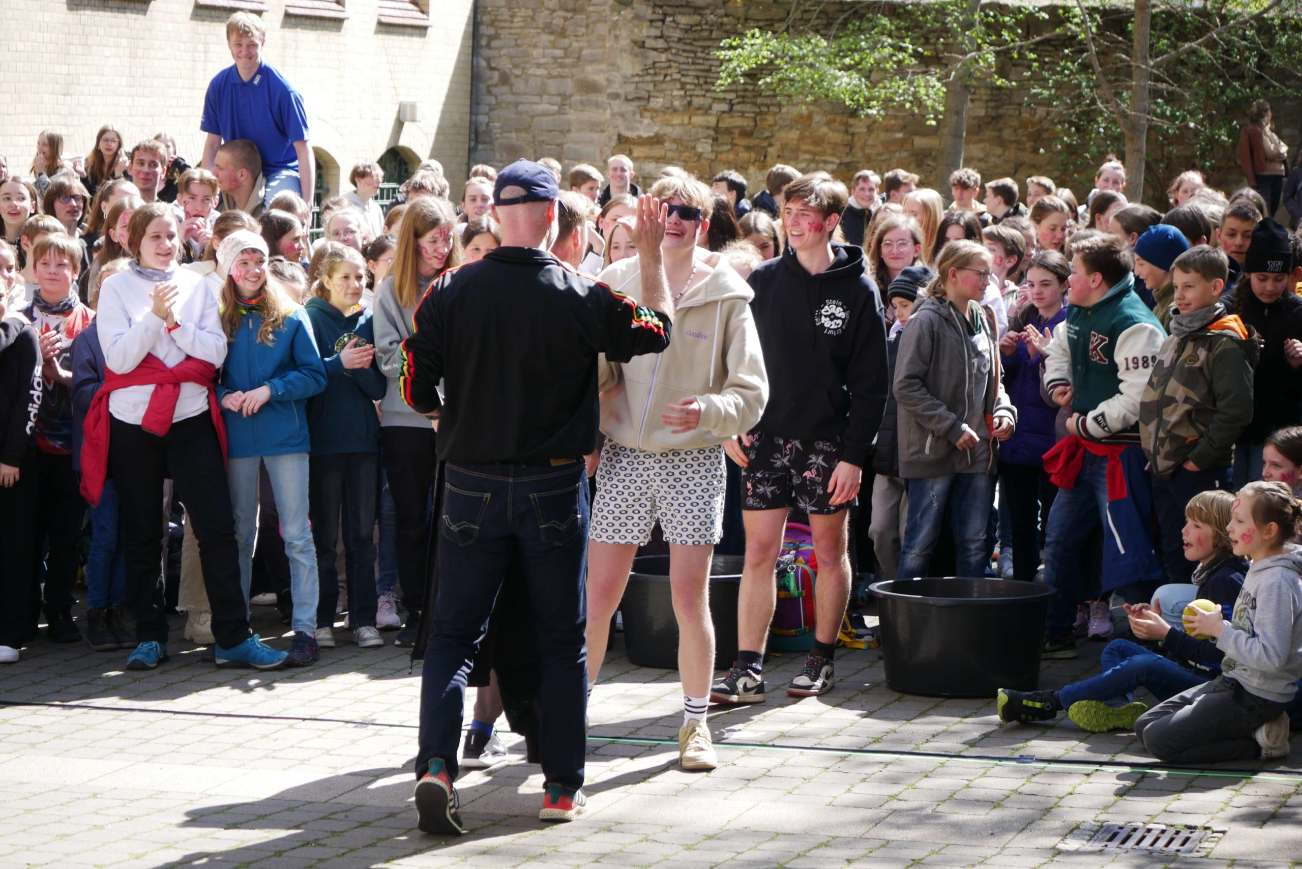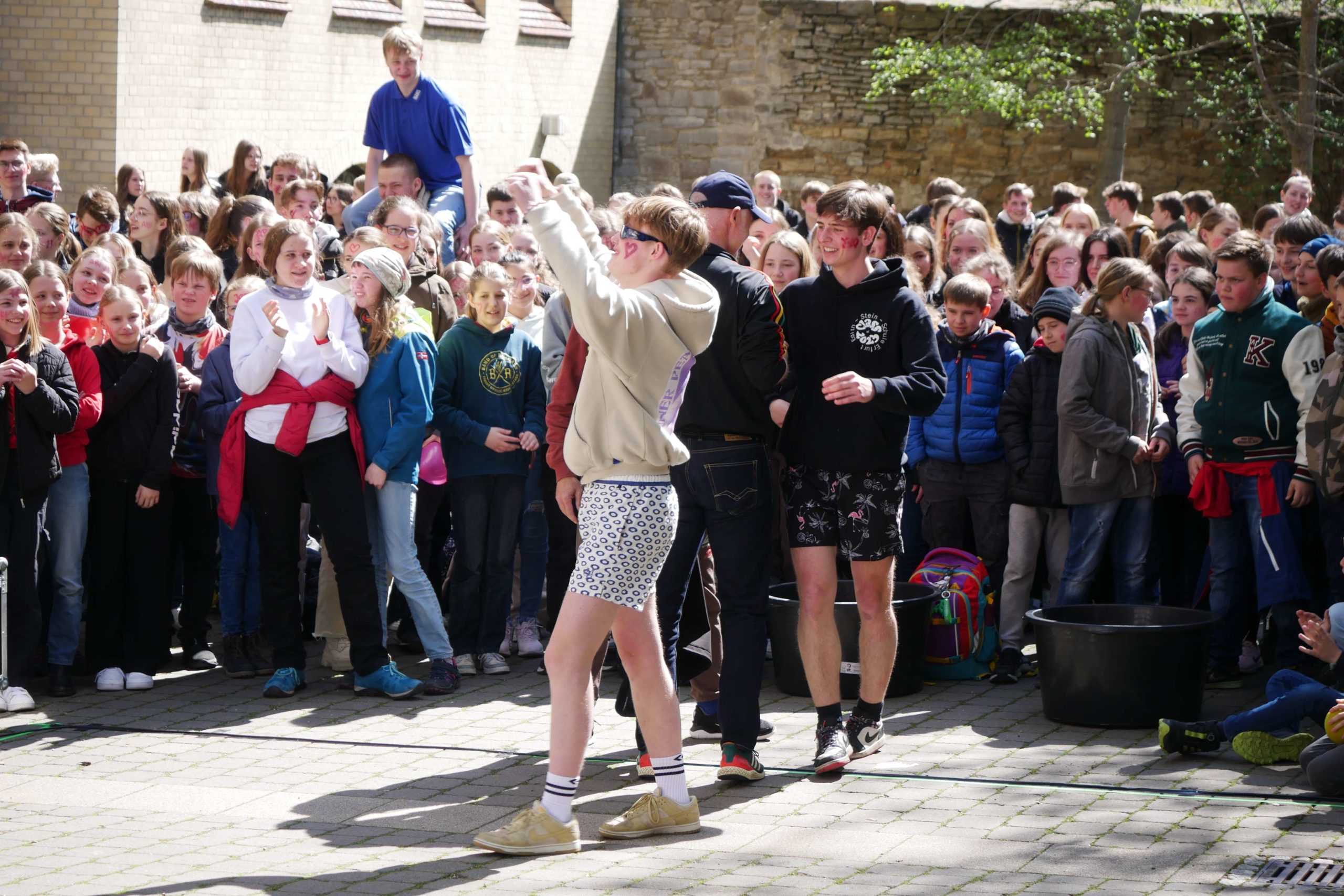 Dafür hatten die zukünftigen Absolventen ordentlich ins Zeug gelegt und ein unterhaltsames Programm auf die Bühne gebracht, bei welchem u.a. einige Lehrer gegen die Expert*innen des Jahrgangs antreten durften. Über 90 Minuten gab es ein Potpourri aus Montagsmaler, Voice of ESS, Obstacle Team Run, ENTM, Pensionärs Pong und Dance Academy. Da die Schüler das abschließende Tauziehen gewinnen konnten, waren auch die teils verlorenen Spiele schnell vergessen und unter großem Jubel zogen sie aus dem Schulgelände aus. Wenn auch nur kurz, denn das Aufräumen und die Zeugnisausgabe standen noch auf dem Programm, bevor sich dann die meisten wohl endlich eine Mütze Schlaf gegönnt haben.