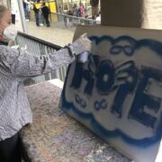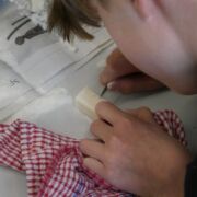 So gab es Möglichkeiten, sich entweder über Graffiti und Maskenbildnerei künstlerisch zu betätigen oder beim Darstellen und Gestalten Workshop verschiedene Sinne zu erfahren. Auch das Angebot, handarbeitlich aktiv zu werden, nutzten einige, um zu stricken und Taschen zu besticken.