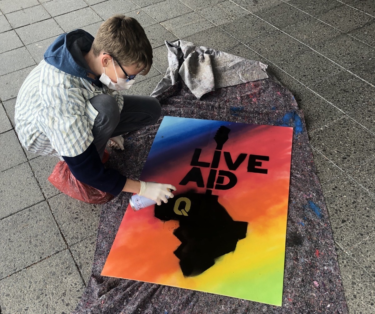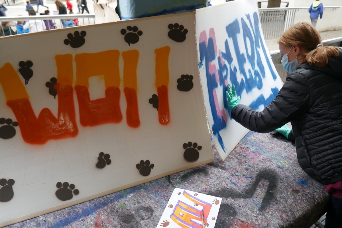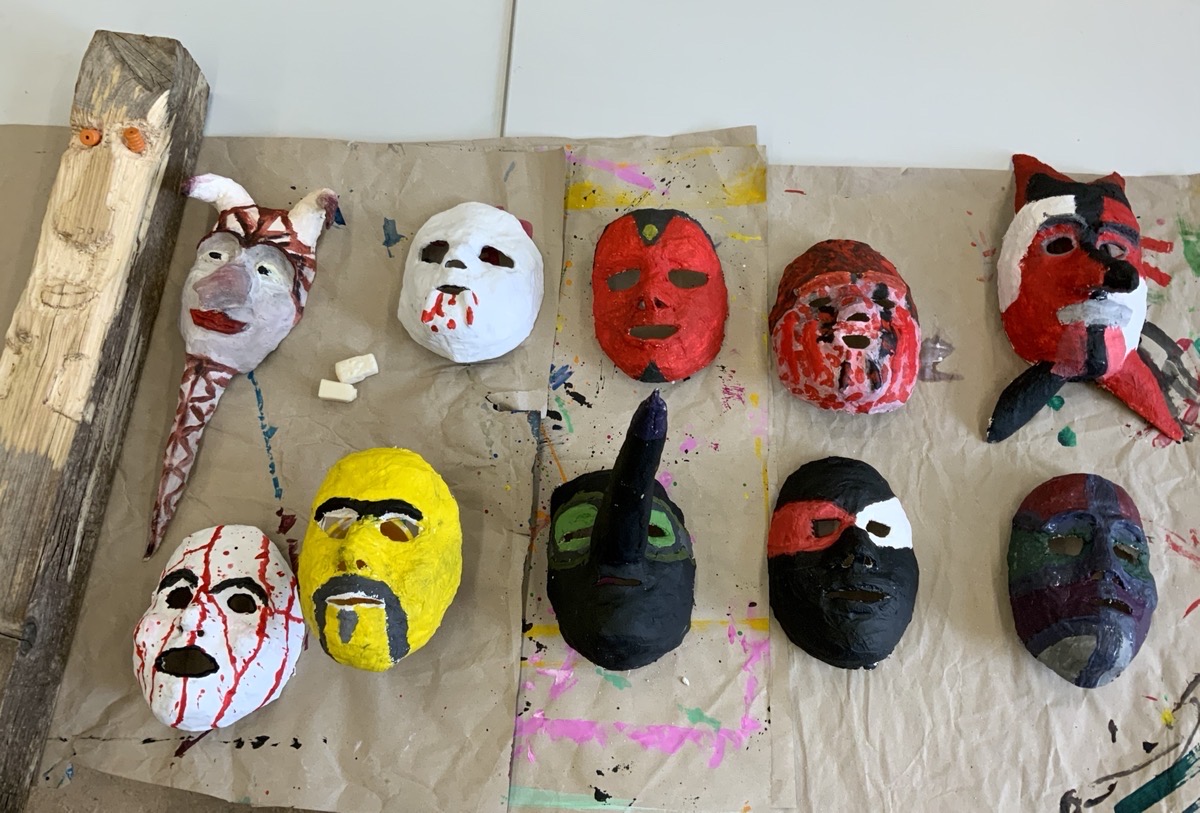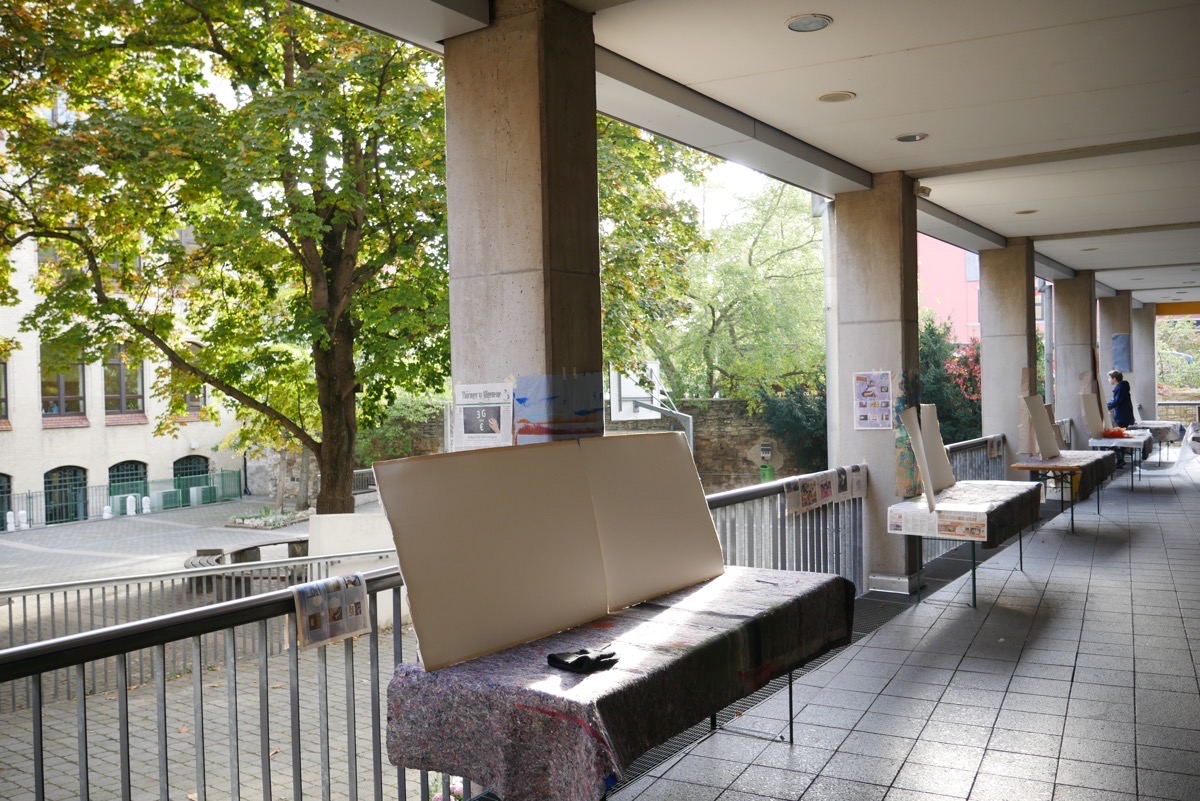 So gab es Möglichkeiten, sich entweder über Graffiti und Maskenbildnerei künstlerisch zu betätigen oder beim Darstellen und Gestalten Workshop verschiedene Sinne zu erfahren. Auch das Angebot, handarbeitlich aktiv zu werden, nutzten einige, um zu stricken und Taschen zu besticken.