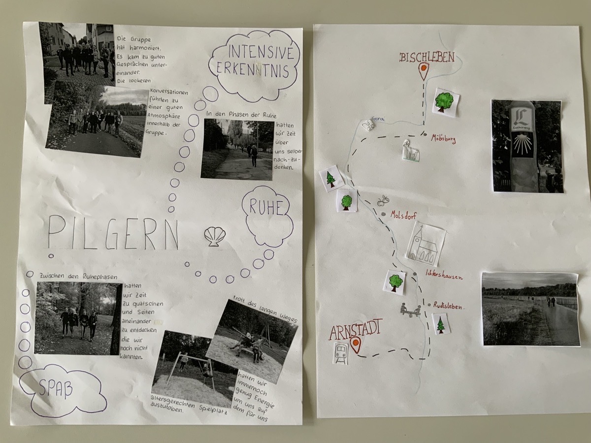 Alternativ konnte der Tag auch mit einer kleinen Pilgerreise verbracht werden, bei welcher Wege aufgezeigt wurden, den eigenen Ruhepol während einer spirituellen Wanderung zu finden oder Fragen des Glaubens anzusprechen. Schulseelsorgerin Christiane Hennig-Schönemann beobachtete mit ihrer Gruppe unter dem Tagesmotto Achtsamkeit u.a. Passanten auf dem Anger reflektierte über eigene Gewohnheiten und Erfahrungen. Mit verschiedenen Übungen zeigte Ina Seiler Variationen auf, über Bewegung und Entspannung den Anforderungen und Problemen des Alltags zu trotzen.