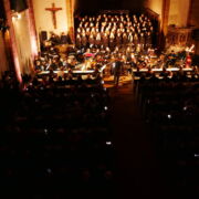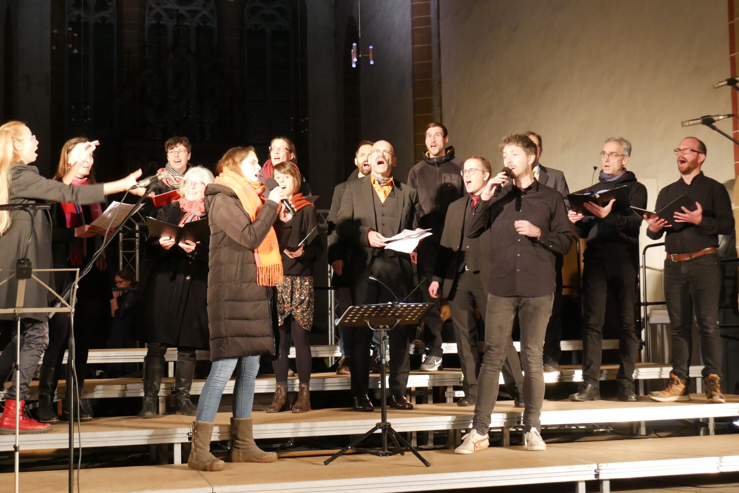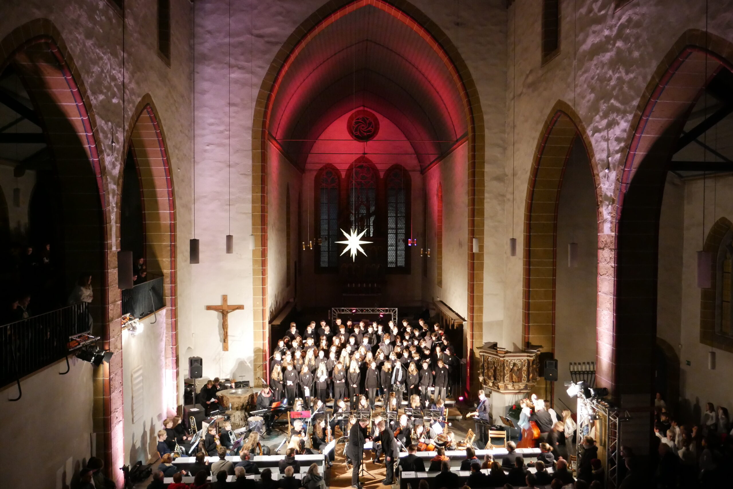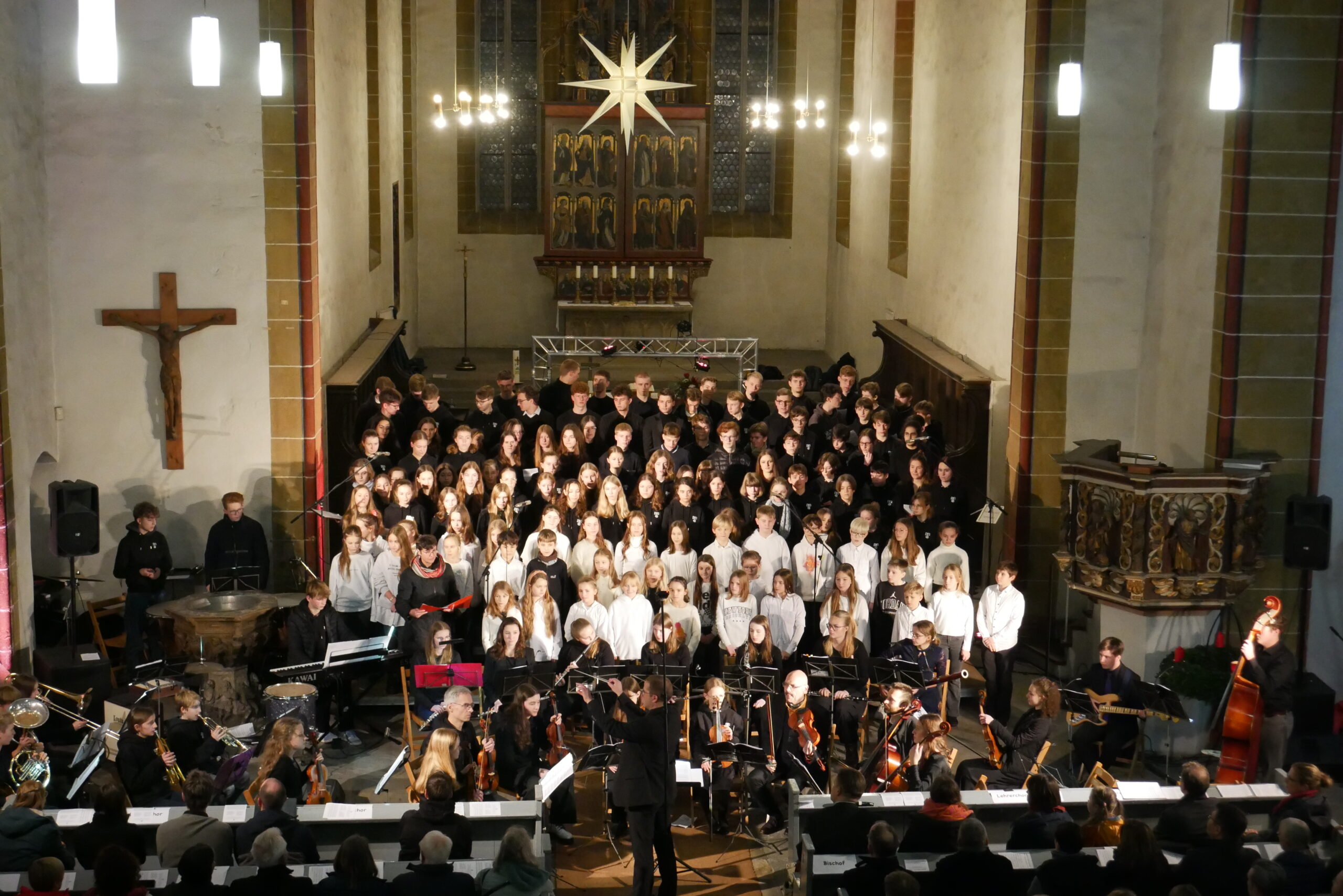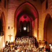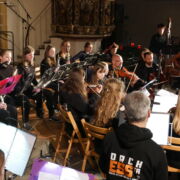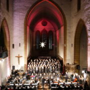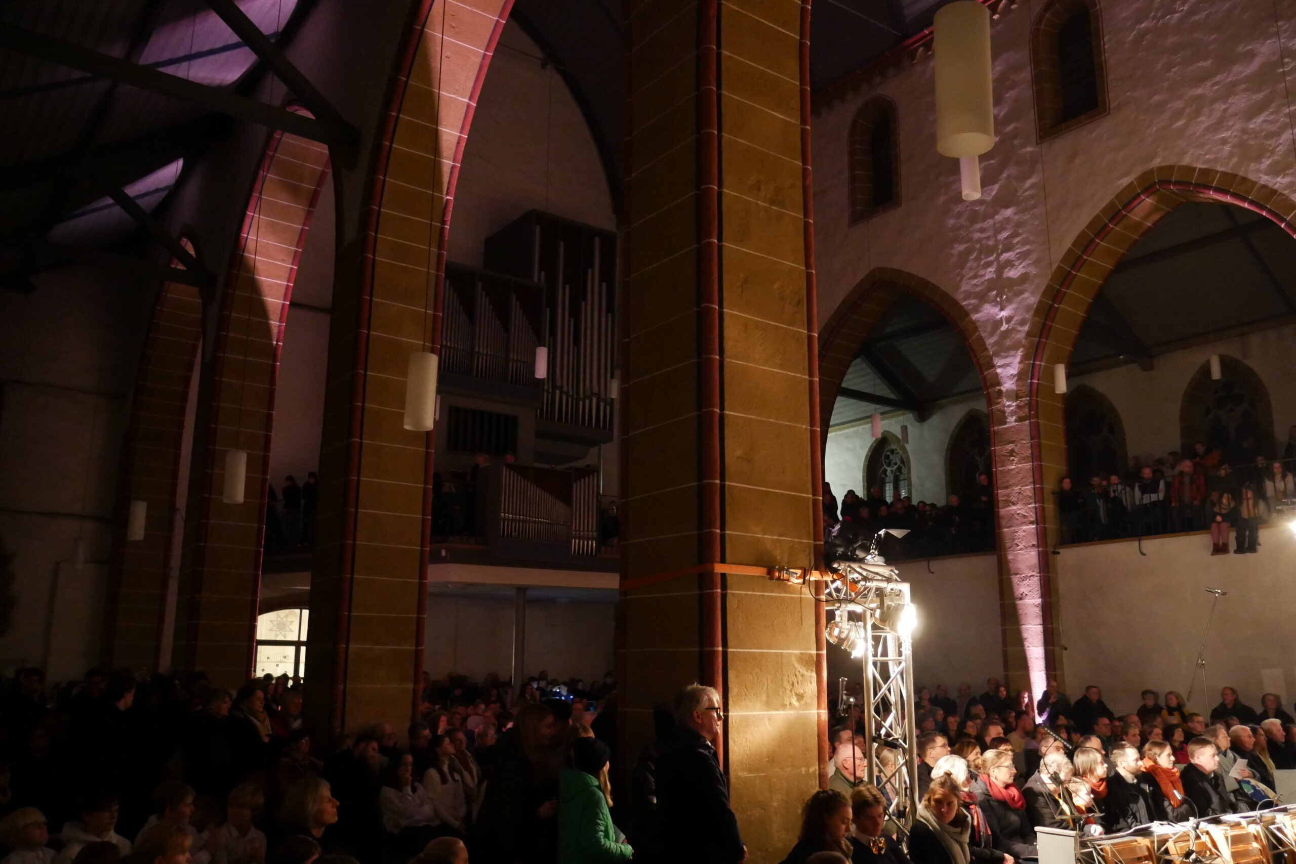 Zum Ende des Konzerts versammelten sich dann alle Musiker*innen und Chöre auf dem Bühnenpodest. Zunächst stimmte der Kinderchor mit „Macht hoch die Tür“ die Gemeinde ein und dann erklang ein stimmgewaltiges und orchestral unterstütztes „Verkündet aller Welt“. Mit diesem würdigen Finale ging ein Konzertabend zu Ende, der sowohl bei den Musizierenden, als auch beim Publikum einen bleibenden Eindruck hinterlassen hat.