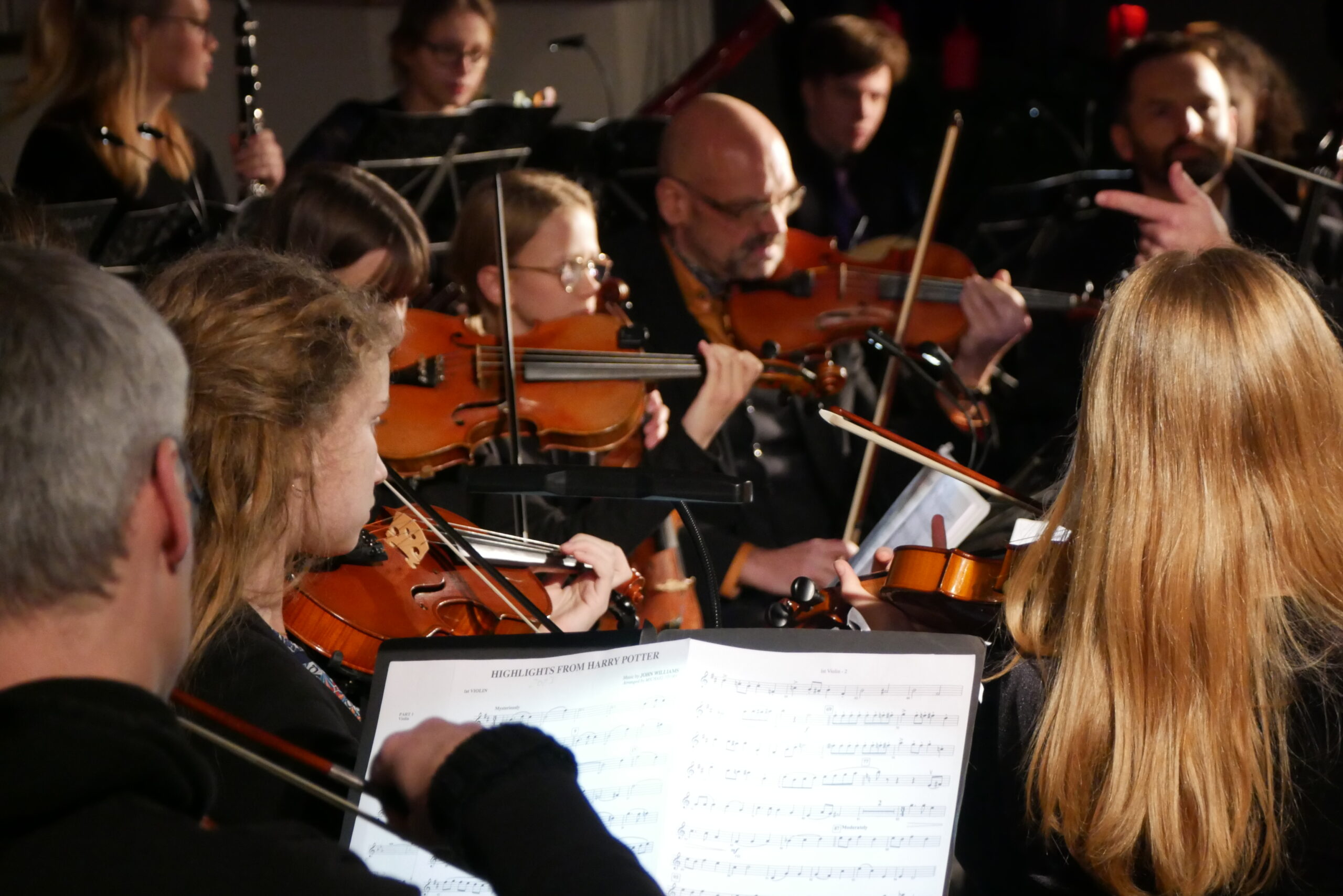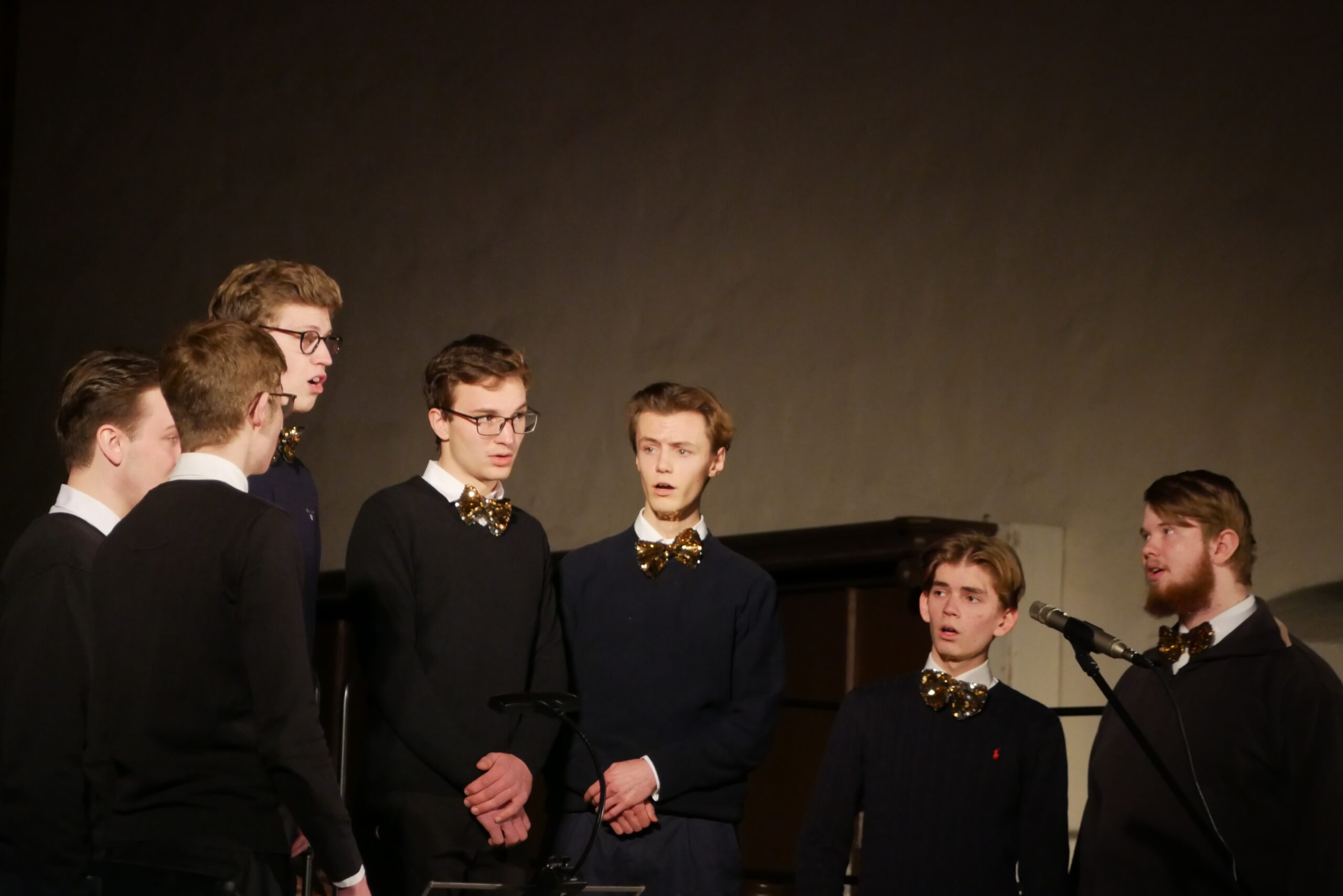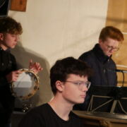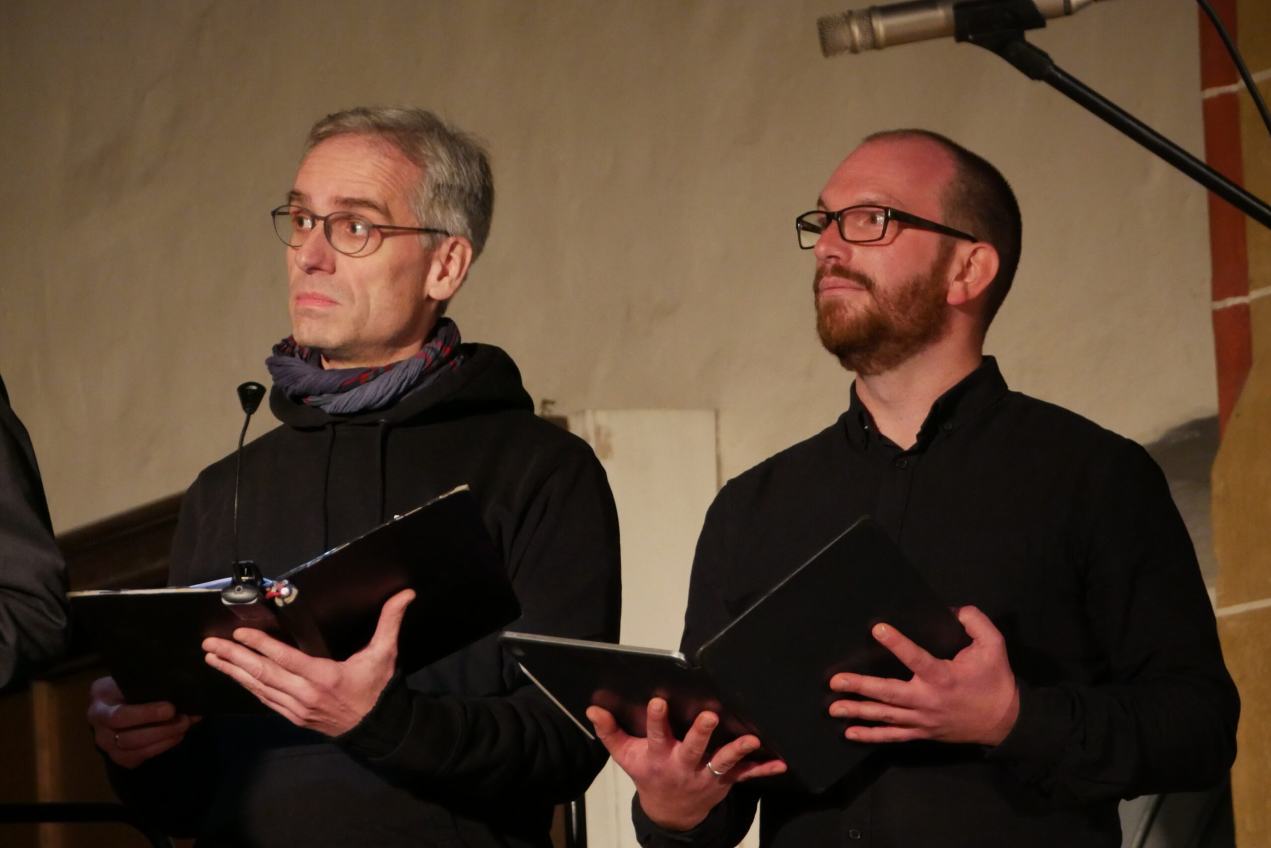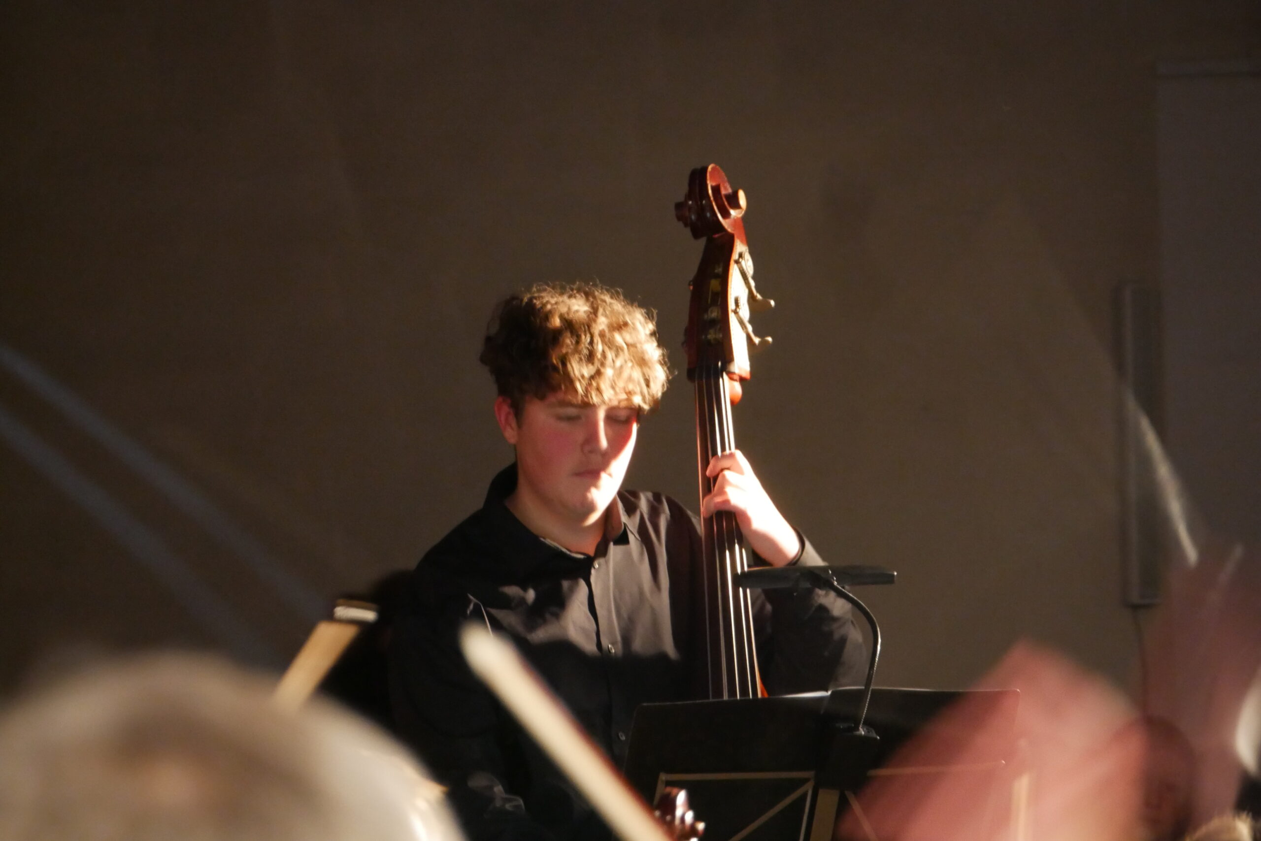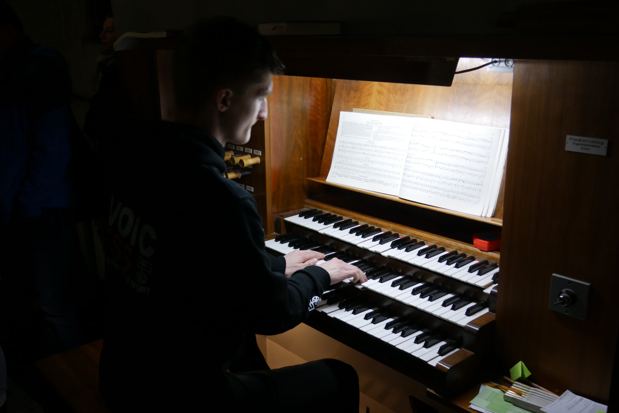 Kaum zu toppen – könnte man meinen, doch auch die 7 jungen und sehr adretten Herren des VoicESS Kammerchors standen den Lehrer*innen in nichts nach und begeisterten mit ihrer Performance das Publikum. Dann wurde es gesanglich erst einmal ruhig, da nach kurzem Umbau endlich das orch.ESS.ta zum Zuge kam. Als Herr Habermann die 27 Instrumente in der kühlen Kirchenluft endlich in Einklang gebracht hatte, verzückten die Musiker zunächst mit drei Instrumentalstücken die Zuhörer. Insbesondere die bekannten Töne aus Harry Potter und dem Polarexpress kamen beim jüngeren Publikum besonders gut an.