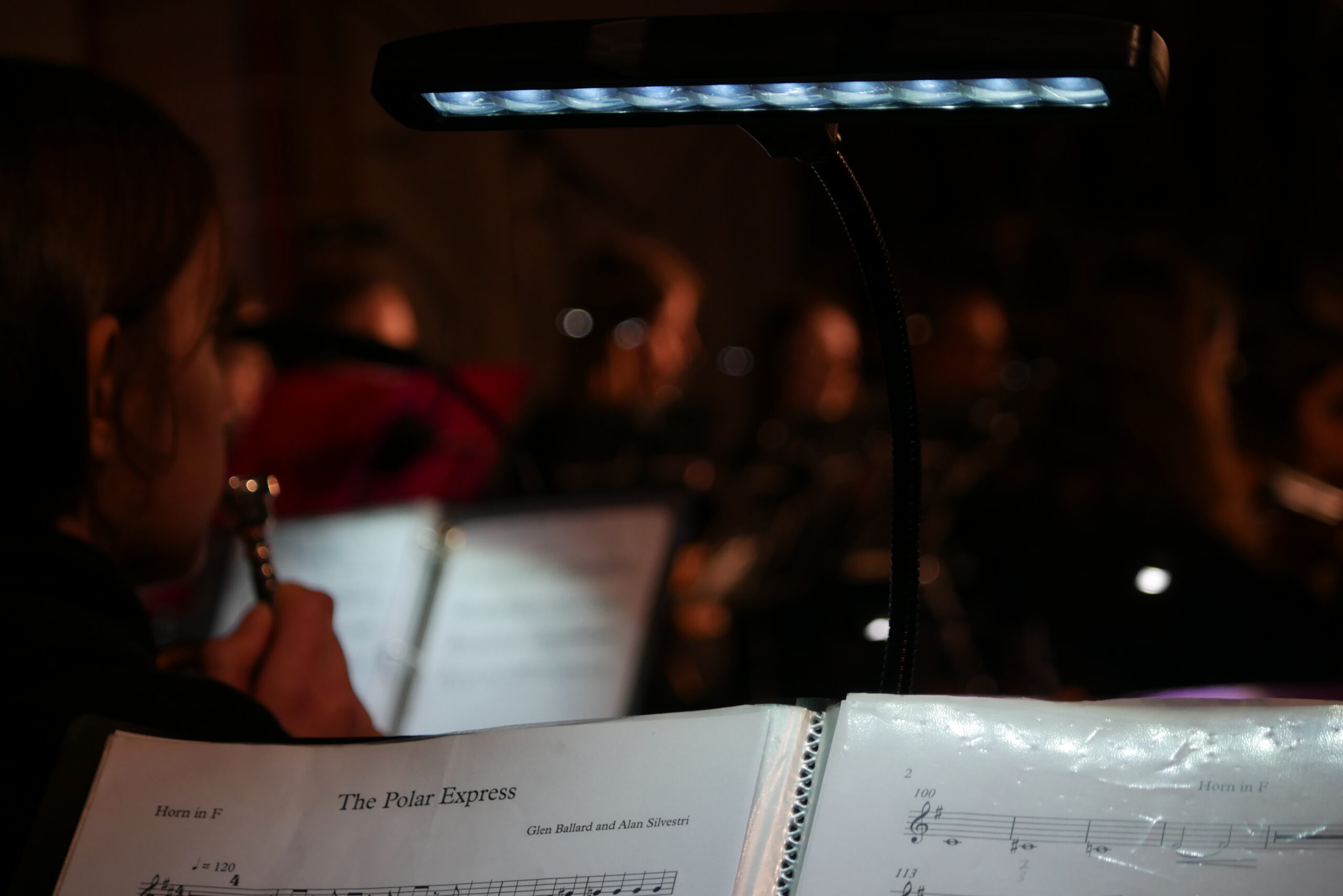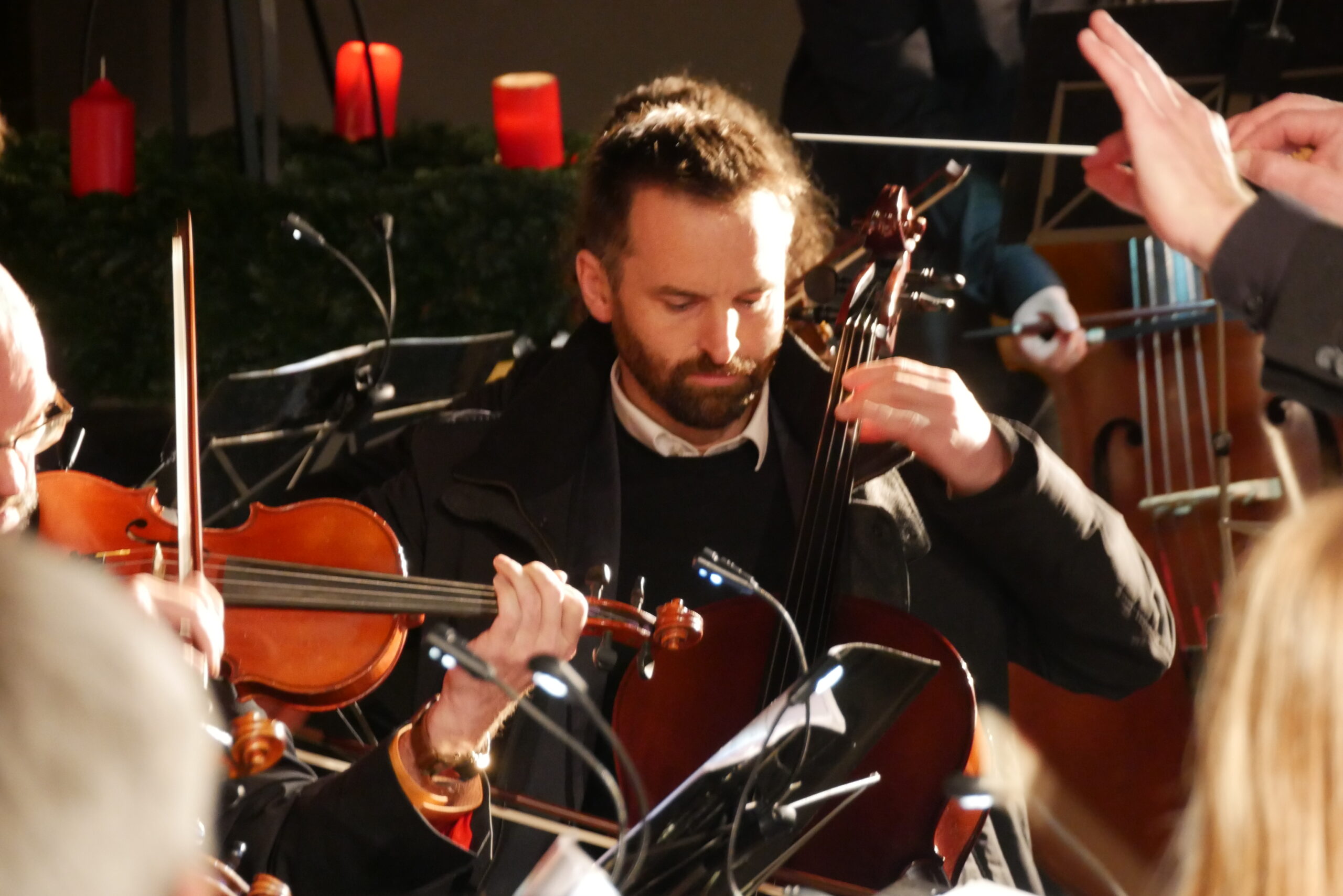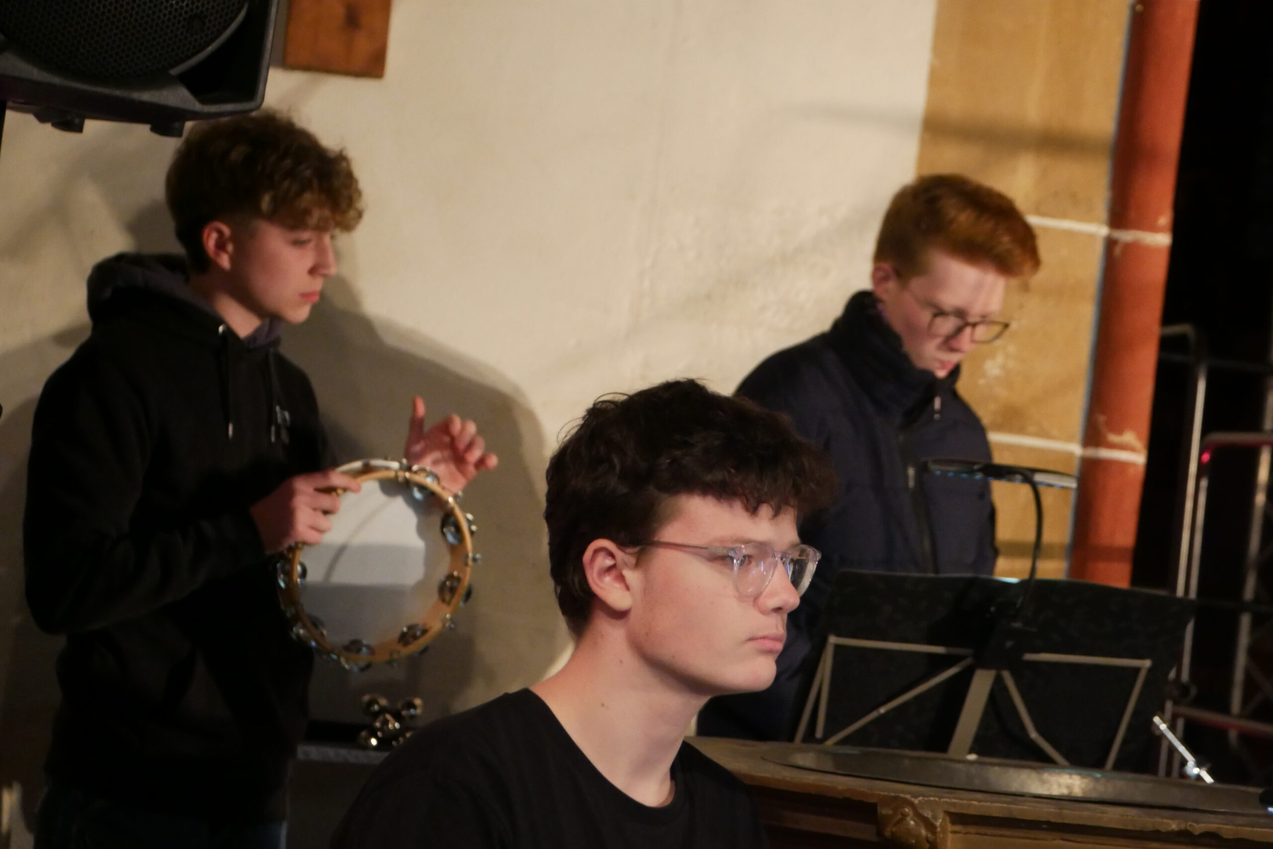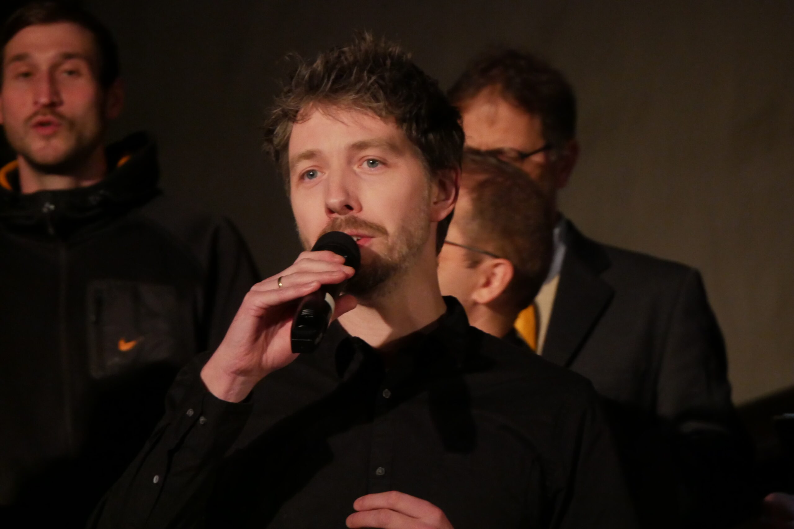 Kaum zu toppen – könnte man meinen, doch auch die 7 jungen und sehr adretten Herren des VoicESS Kammerchors standen den Lehrer*innen in nichts nach und begeisterten mit ihrer Performance das Publikum. Dann wurde es gesanglich erst einmal ruhig, da nach kurzem Umbau endlich das orch.ESS.ta zum Zuge kam. Als Herr Habermann die 27 Instrumente in der kühlen Kirchenluft endlich in Einklang gebracht hatte, verzückten die Musiker zunächst mit drei Instrumentalstücken die Zuhörer. Insbesondere die bekannten Töne aus Harry Potter und dem Polarexpress kamen beim jüngeren Publikum besonders gut an.