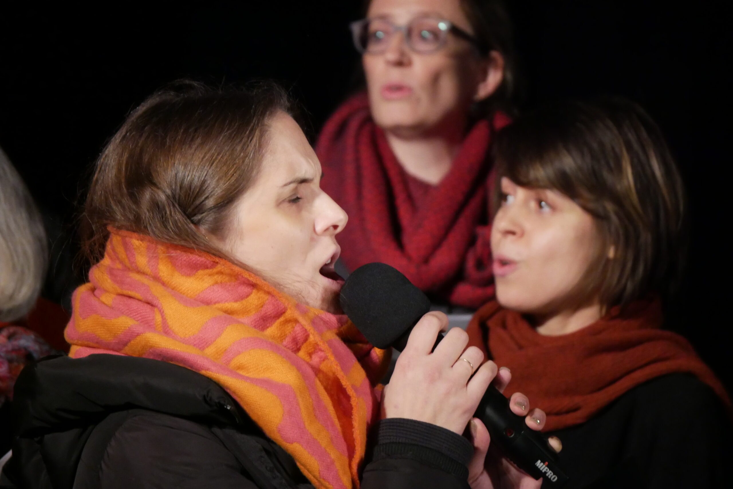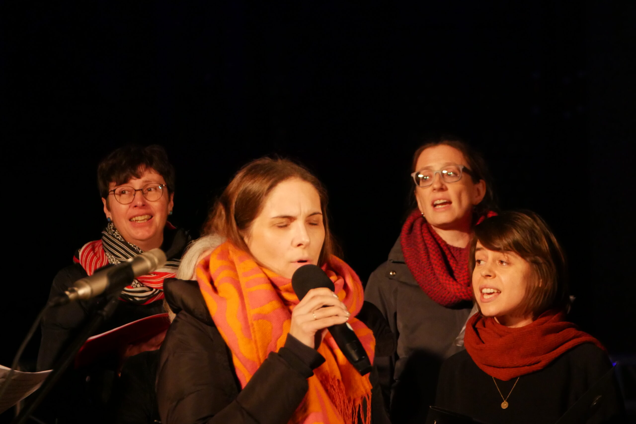 Mit Chorleiterin Frau Wollensak erklang als nächstes das Vokalensemble mit weihnachtlichen Grüßen aus Schweden und einem Winter Medley. Kaum war der Jubel verebbt stand der Auftritt des Lehrerchors an, auf welchen vor allem die Schüler mit Spannung warteten. Die Stimmung brodelte förmlich über, als dann auch noch Frau Scholz und Herr Stezycki zu ihren Soli ansetzten und Herr Hofmann als Unterstützung aus der Elternschaft als Beatbox fungierte.