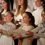 Nachdem der Oberstufenchor unter der Leitung von Herrn Fellner den Abend eröffnete, erklangen im Anschluss die Stimmen der ESS-Kids, die ihren Gesang mit einer Bewegungschoreographie untermalten.  Während einer Durchschnaufpause des Kinderchors, bei welchem einige 5. Klässler gerade ihren ersten großen Auftritt hatten, brachten zwei mutige Solisten des Vororchesters mit Unterstützung von Frau Hörning ihre Instrumente zum Klingen. Kurz darauf stand wieder der Oberstufenchor im Mittelpunkt, doch folgten bald die Gesangsbeiträge von VoicESS, dem Jugendchor der ESS. Geschickt nutzen dabei die Chöre sowohl den Applaus des Publikums, welches die Reglerkirche bis in die letzte Ecke füllte, als auch die Kanongesänge der pausierenden Gesangsgruppen im Seitenschiff, um die Wechsel zügig und möglichst unauffällig vonstattengehen zu lassen.