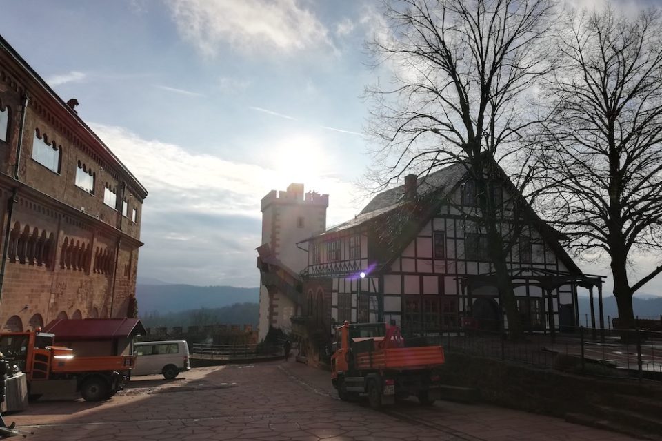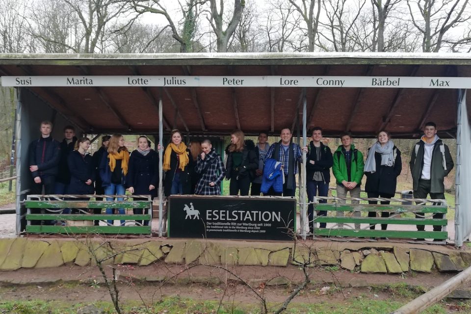 Am 18.12.2019 brach die Klasse 12b mit ihren Lehrern Herrn Dubiel und Herrn Bartsch bei ungewöhnlich warmen 16 Grad zu einer Exkursion auf die Wartburg und nach Eisenach auf. Der Ausflug bildete den Abschluss zu einer Unterrichtsreihe im Fach Deutsch zu Martin Luther. Dabei wurden sowohl die großen Leistungen Luthers bei der Herausbildung einer einheitlichen deutschen Schriftsprache, sein Widerstandsgeist im Zuge der Reformation und seine theologische Sichtweisen gewürdigt als auch fragwürdige Entscheidungen und befremdliche Urteile, die sich im Verhalten den Bauern gegenüber bzw. in Schriften  gegen die Juden zeigen, diskutiert. Eins sachkundige Führung auf der Burg griff einige dieser Gedanken auf, verwies aber auch auf Luther im friedlichen Kontext der Burggeschichte. Der zweite Teil des Tages stand den Schülerinnen und Schülern in der Eisenacher Innenstadt– zwischen Lutherhaus und Weihnachtsmarkt – zur freien Verfügung.
