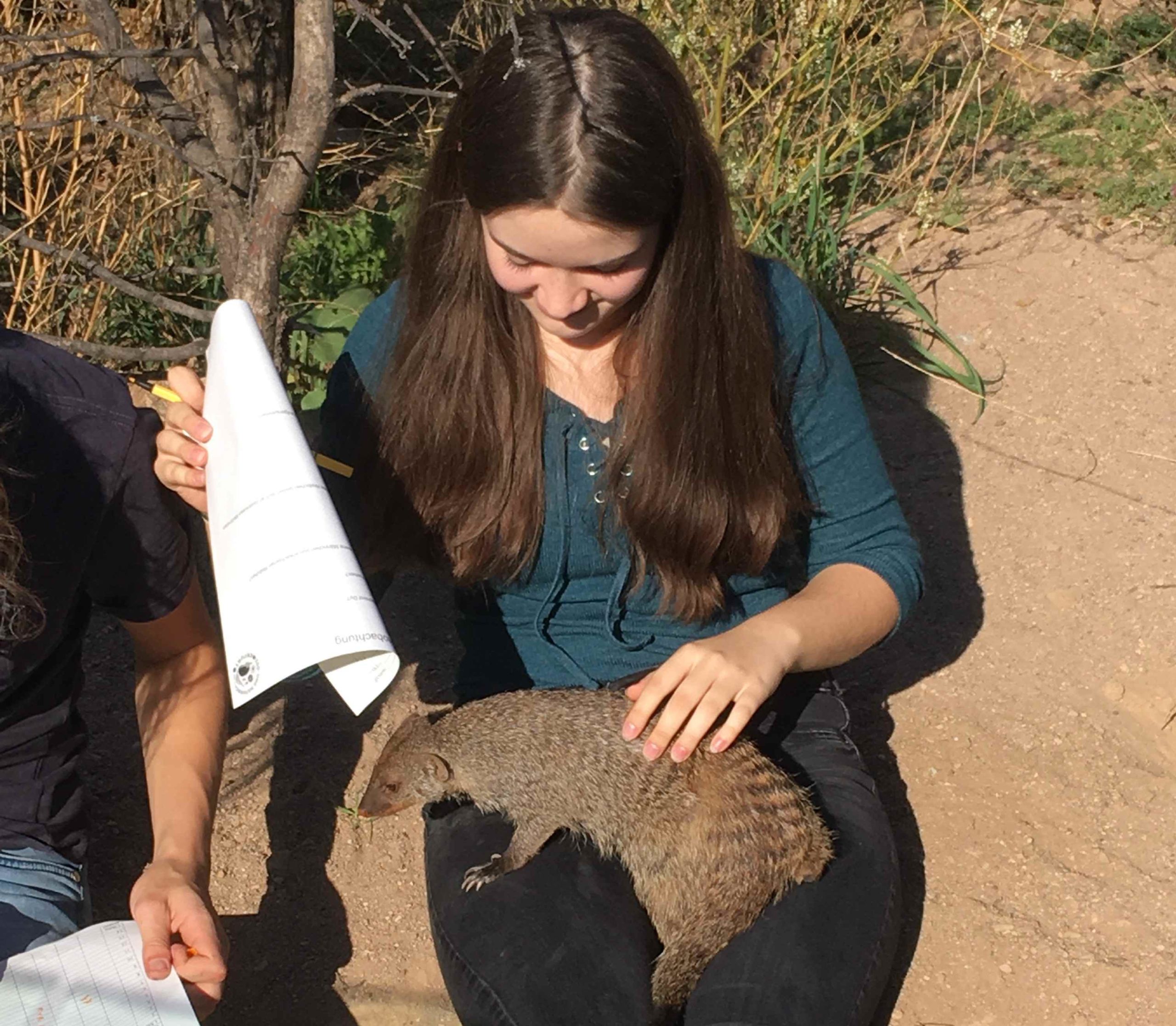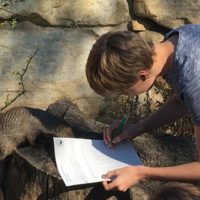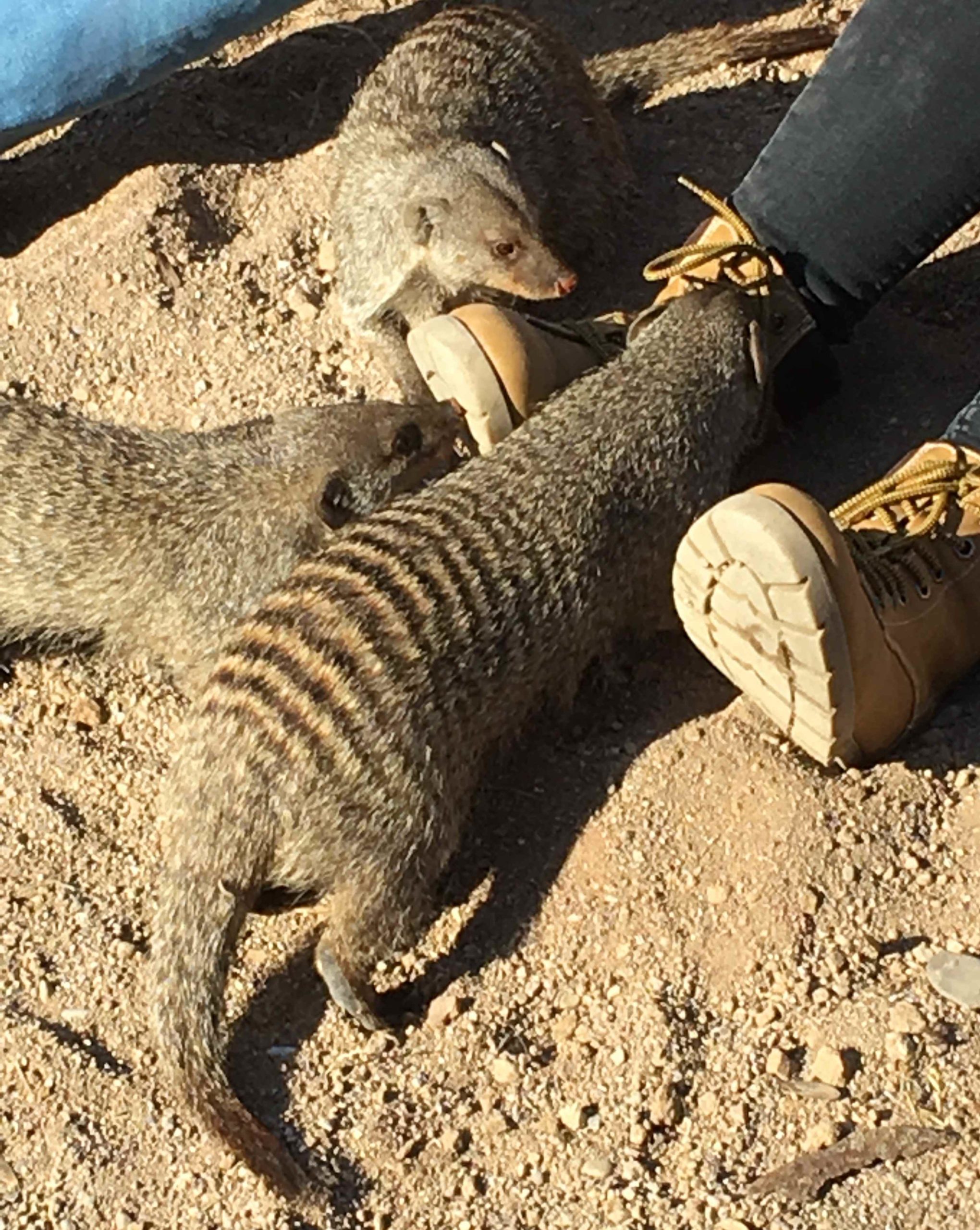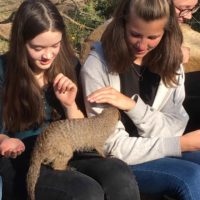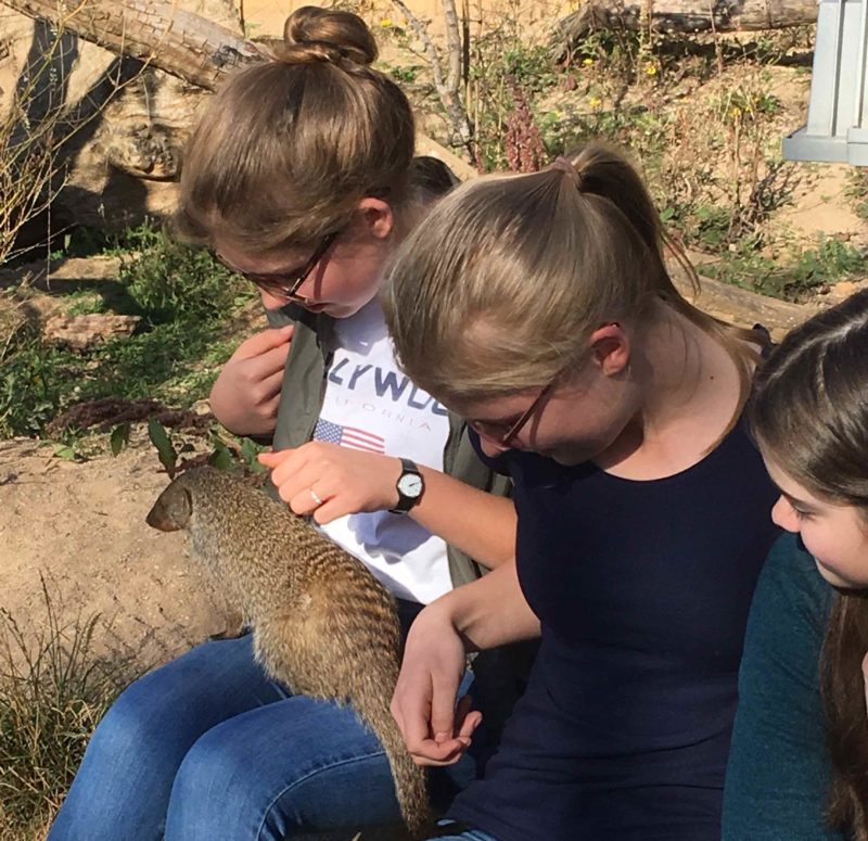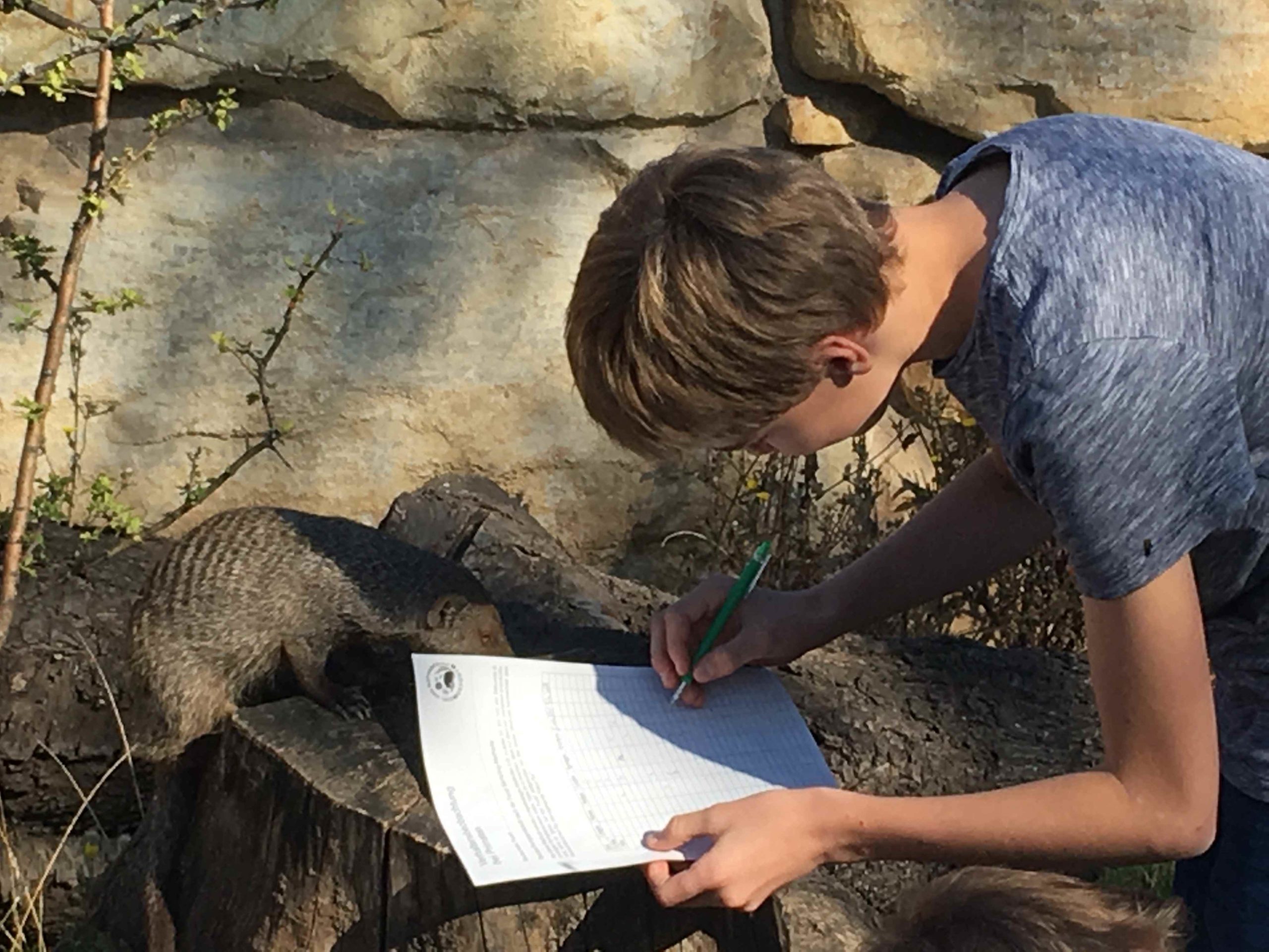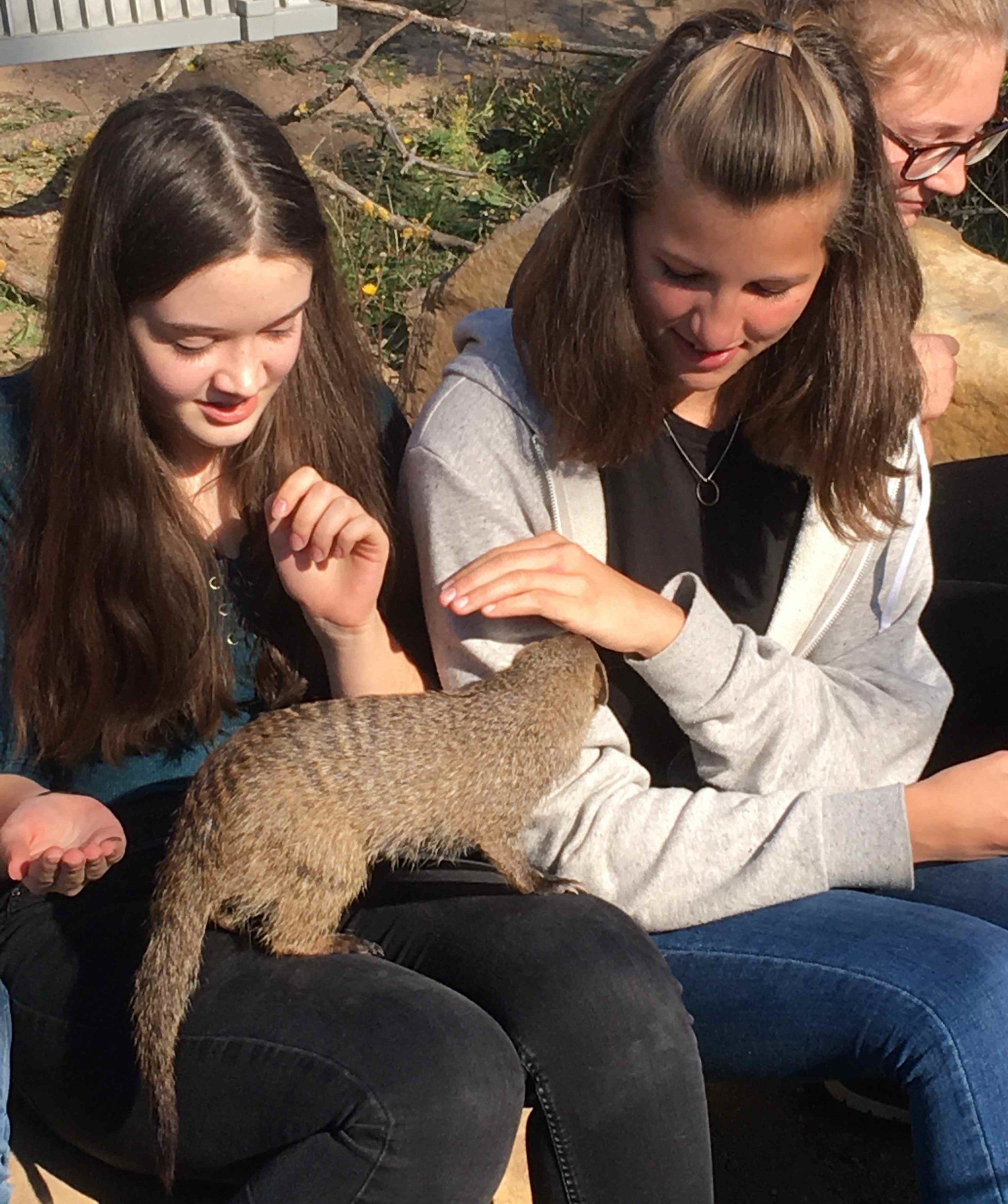 Um sich auf das Ethologiepraktikum mit den Tieren aus dem Vivarium vorzubereiten, haben die Schüler des Kurses 9b NWuT die Zooschule im Zoopark Erfurt besucht. Nach einer theoretischen Einführung konnten die Zebramangusten beobachtet und gefüttert werden. Diese neugierigen Tierchen hatten nach kurzer Zeit ihren Respeckt vor den Schülern abgelegt und kletterten über Rücken und Schultern. Besonders interessant waren auch die Arbeitsblätter der Schüler, die gut zum Spielen und Anknabbern geeignet waren.