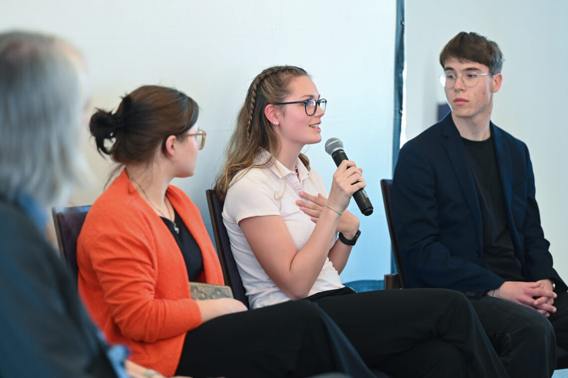 Viel Zeit zum Durchatmen blieb nicht, denn bereits warteten die Besucher*innen des zweiten Konzerts. Auch hier eröffnete das Orchester den Abend, doch das Programm, durch welches Annika, Mathilda und Lina jeweils führten, war keineswegs eine Wiederholung. Neue Stücke, zusätzliche Stimmen und weitere solistische Beiträge sorgten für frische Akzente, wie der Auftritt der Sänger*innen Musikkurse der Oberstufe, die mit großer Ausdrucksstärke und Leidenschaft überzeugten. Hervorzuheben sind dabei die Solistinnen Josephine und Sofia sowie Leonie, die von Elisabeth am Klavier begleitet wurden. Zahlreiche Besucher*innen und Ehrengäste verfolgten auch diesen zweiten Konzertteil, der mit dem abschließenden Segen des Bischofs einen feierlichen Höhepunkt fand. Beide Konzerte endeten traditionell mit einem gemeinsamen musikalischen Finale aller Beteiligten.