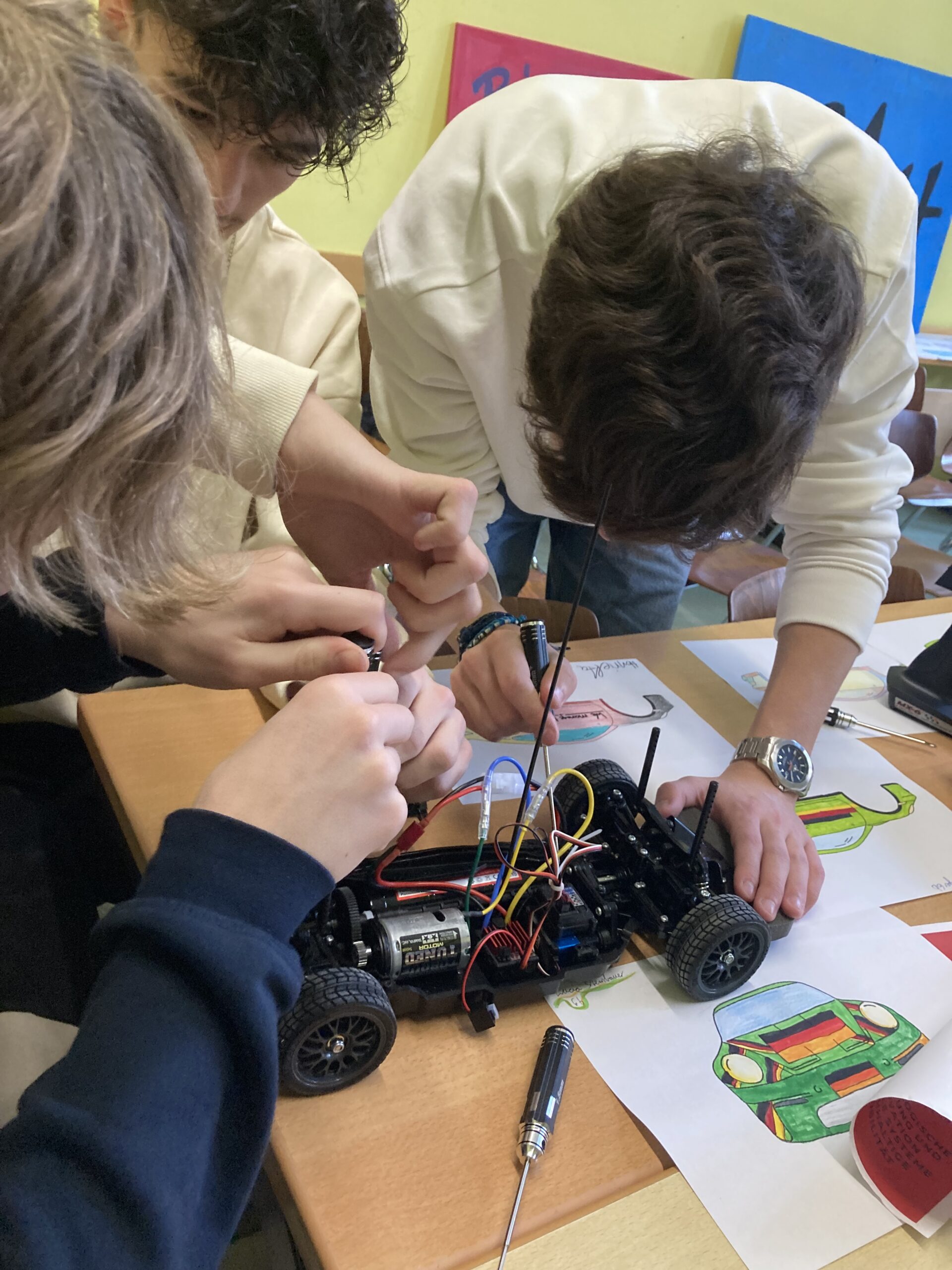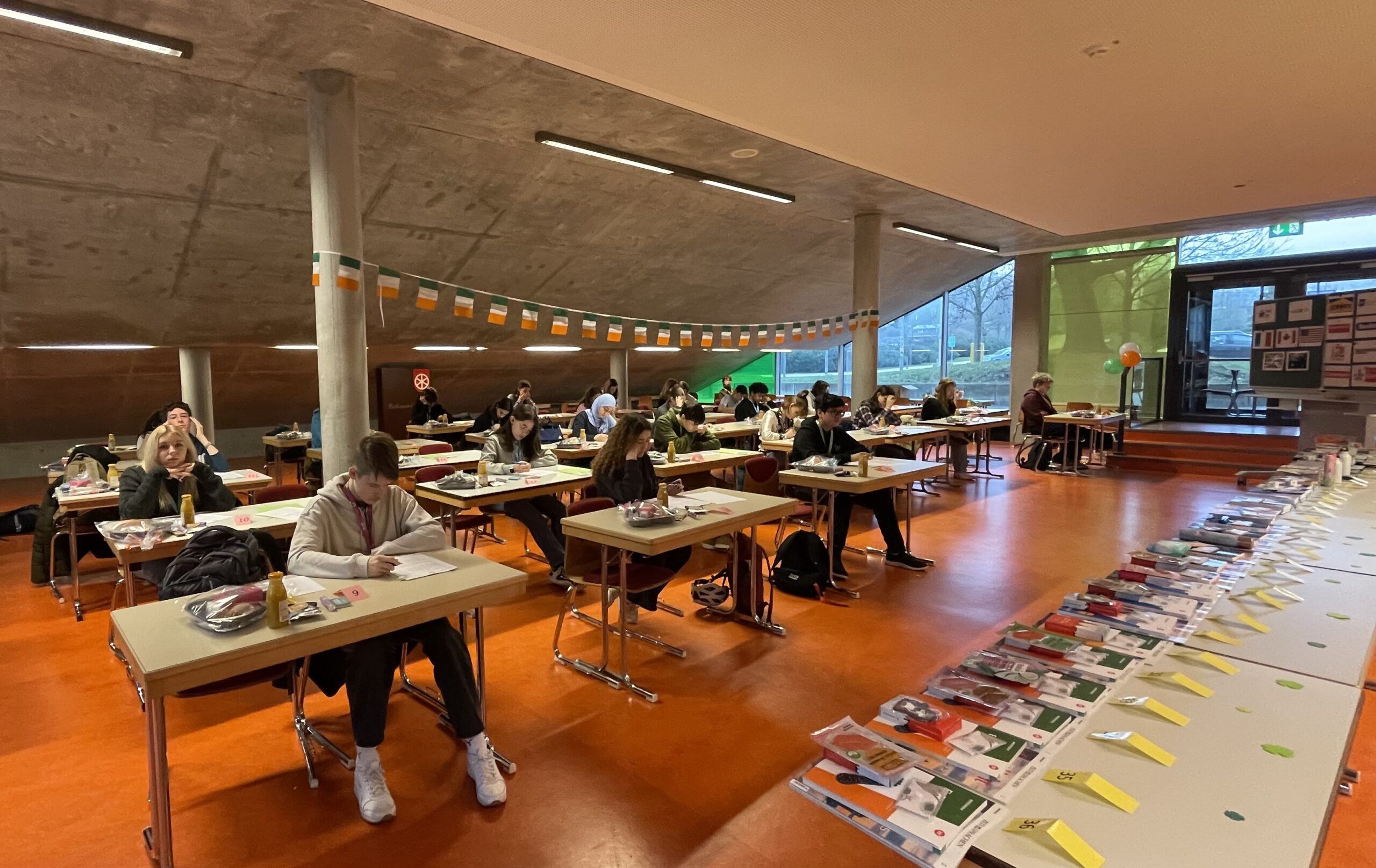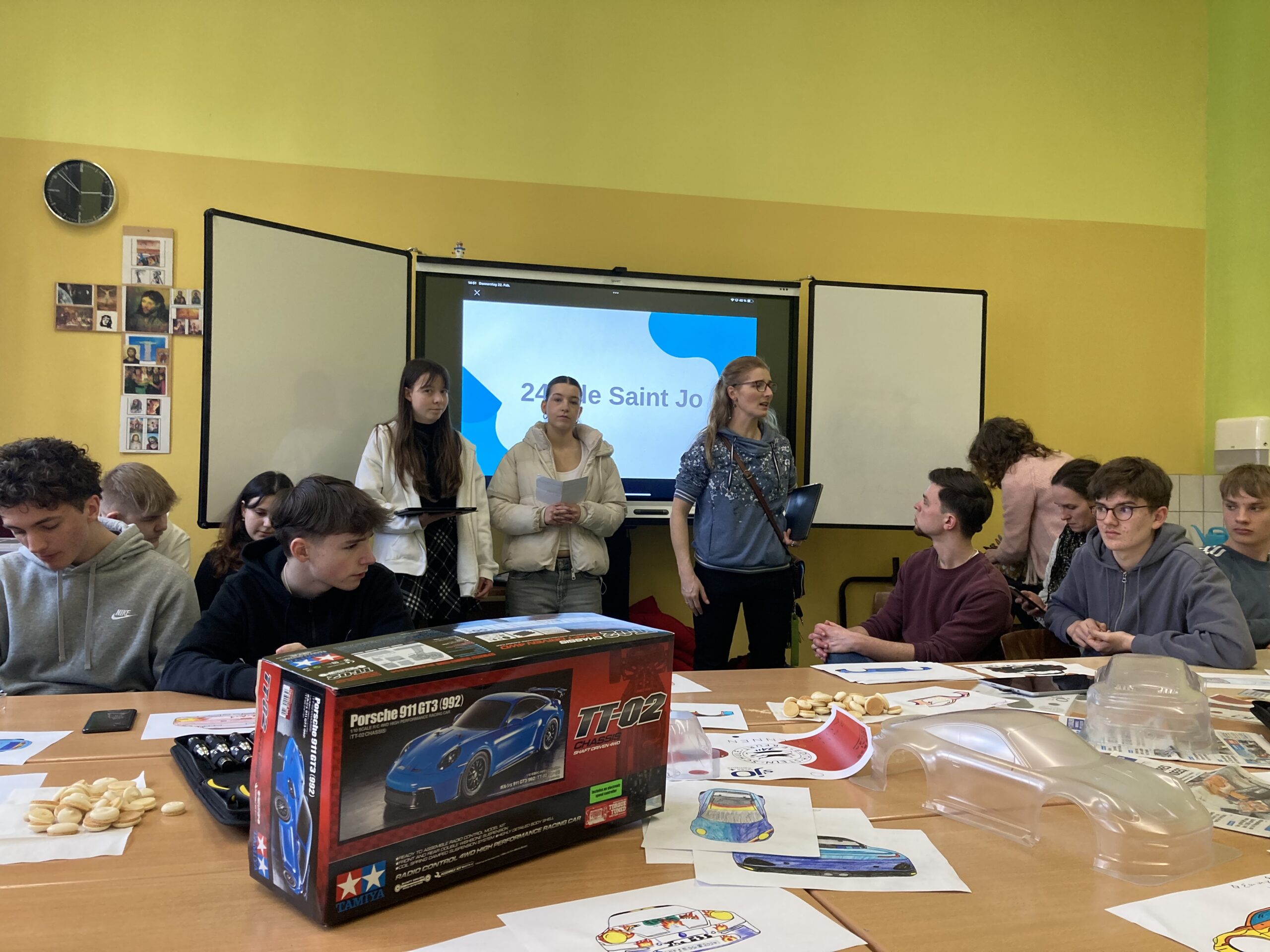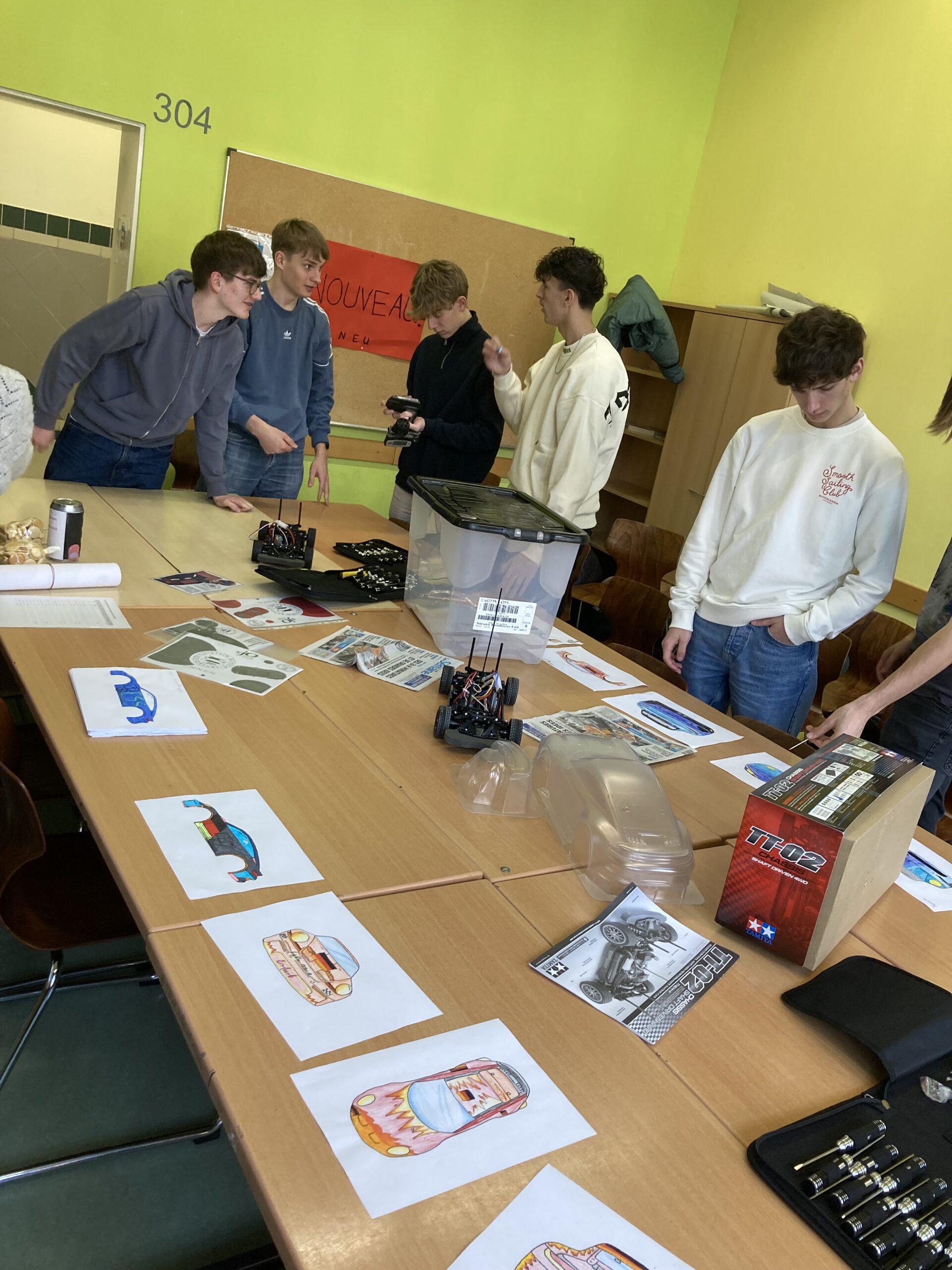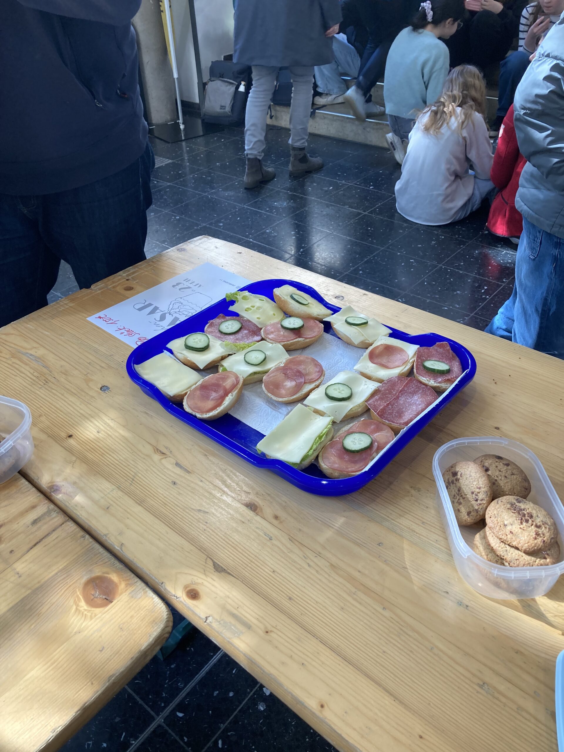 Am Montag sind wir wieder früh aufgestanden – um 5:30 Uhr. Zum Frühstück gab es nur schwarzen Kaffee, da unsere Gastfamilie selbst nicht mitgefrühstückt hat, was für Franzosen wohl üblich ist. Nach einer 30-minütigen, kurvigen Fahrt sind wir am Lycee angekommen und haben uns mit den anderen deutschen Schülern und ihren Austauschpartnern getroffen. In der Aula haben uns französische Schüler einen englischen Vortrag über Boulogne gehalten, danach gab es eine Campustour, bei der wir die Schule kennengelernt haben. Wir haben auch zwei Stunden Geographie und Geschichte besucht – im Vergleich zum deutschen Unterricht war alles langsamer und sehr analog. Zum Mittagessen gab es in der Kantine ein buntes Buffet mit viel Auswahl. Am Nachmittag sind wir mit Reiner, unserem Busfahrer, zum Strand gefahren, wo wir Teambuilding-Spiele gemacht haben. Als Überraschung haben die Lehrer uns deutsche und französische Süßigkeiten mitgebracht. Abends sind wir wieder in unsere Gastfamilien zurückgekehrt, haben den Tag reflektiert und gemeinsam zu Abend gegessen.