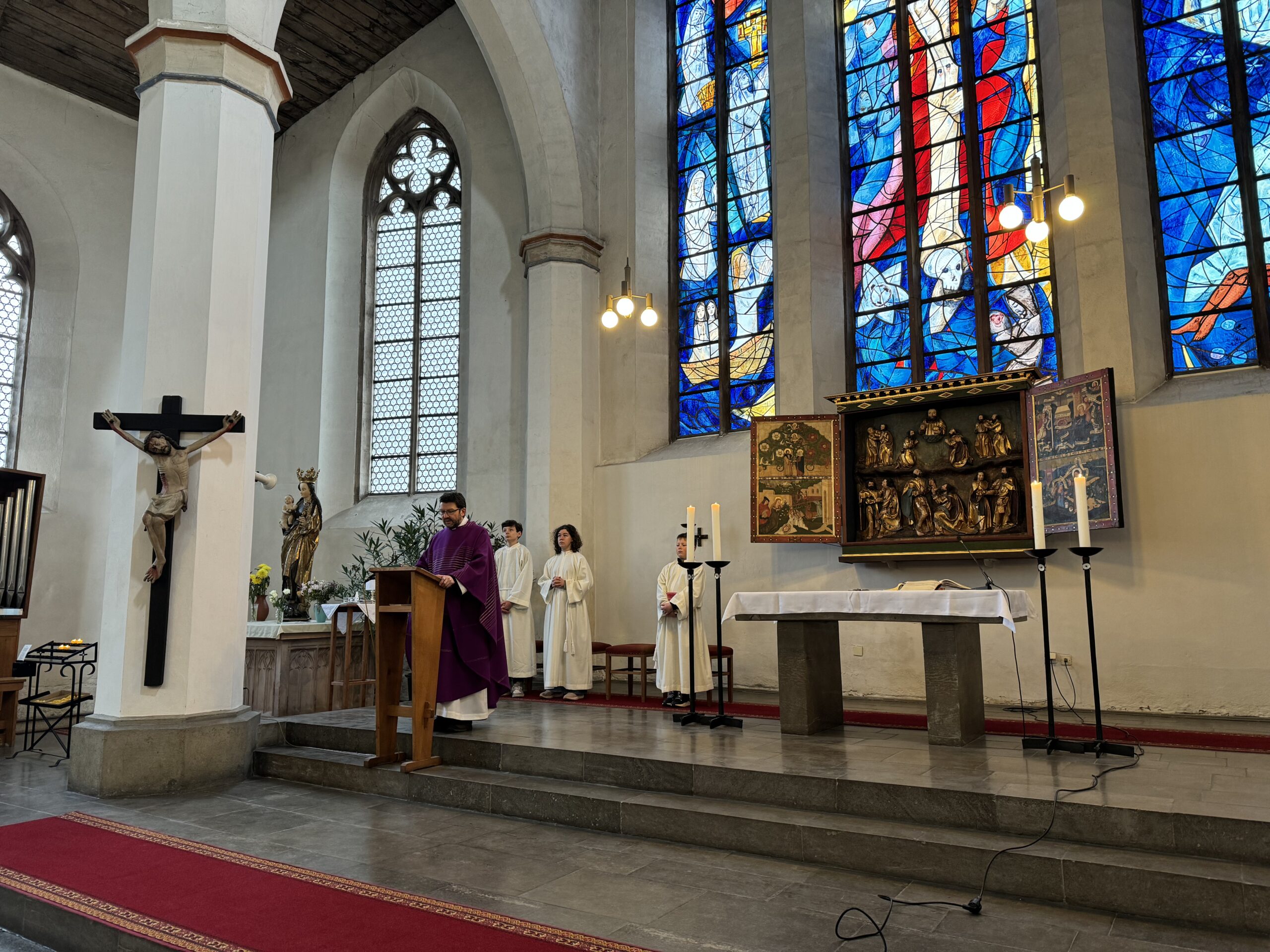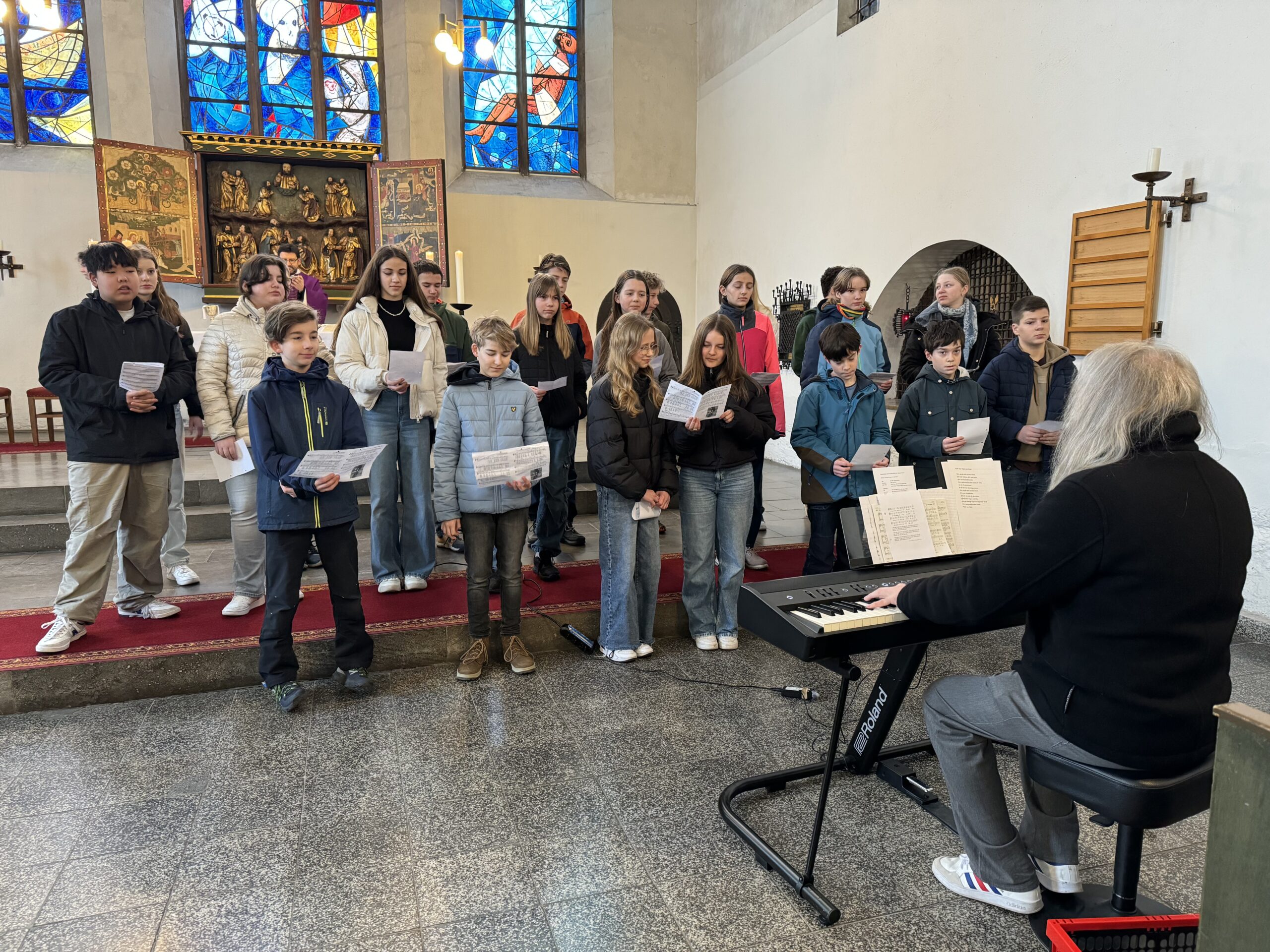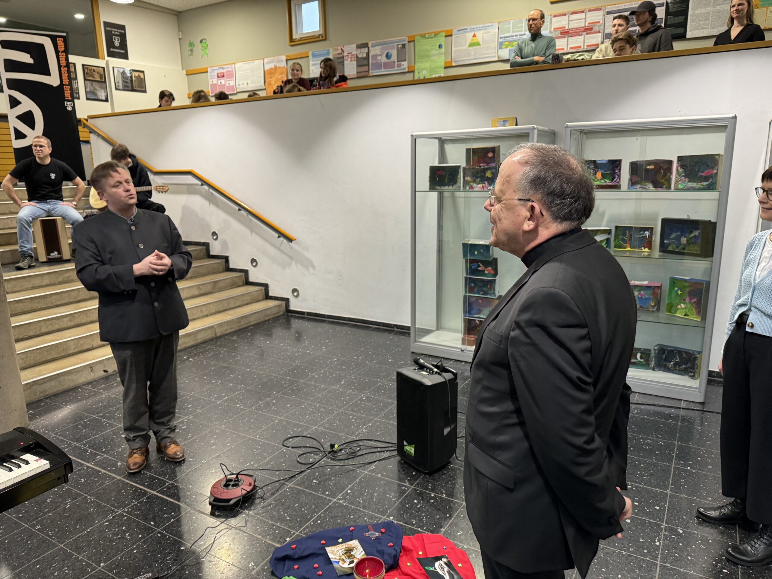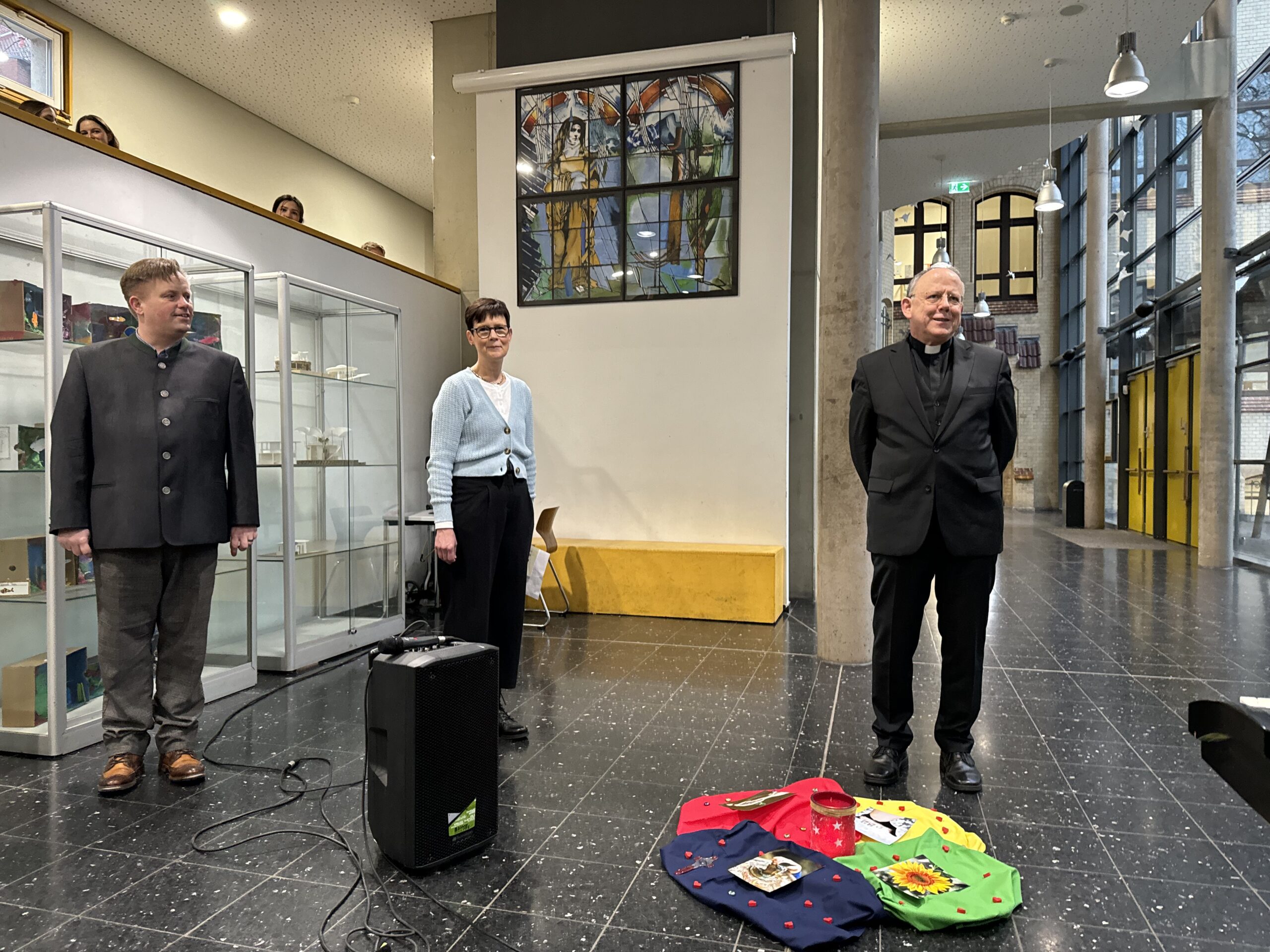 Trotz erneut widriger Wetterbedingungen fand, zum diesjährigen Patrozinium von Edith Stein, im Dom der traditionelle Gottesdienst mit der gesamten Schulgemeinschaft statt. Unter der Leitung von Generalvikar Dominik Trost, sowie unserer Schulseelsorgerin Christiane Henning-Schönemann wurde unserer Namenspatronin gedacht, wobei Passagen ihres Lebens und Wirkens vorgelesen oder durch die DuG AG vorgespielt wurden. Schüler- und Lehrerchor sowie Orchester sorgten für die passende musikalische Untermalung des Gottesdienstes.