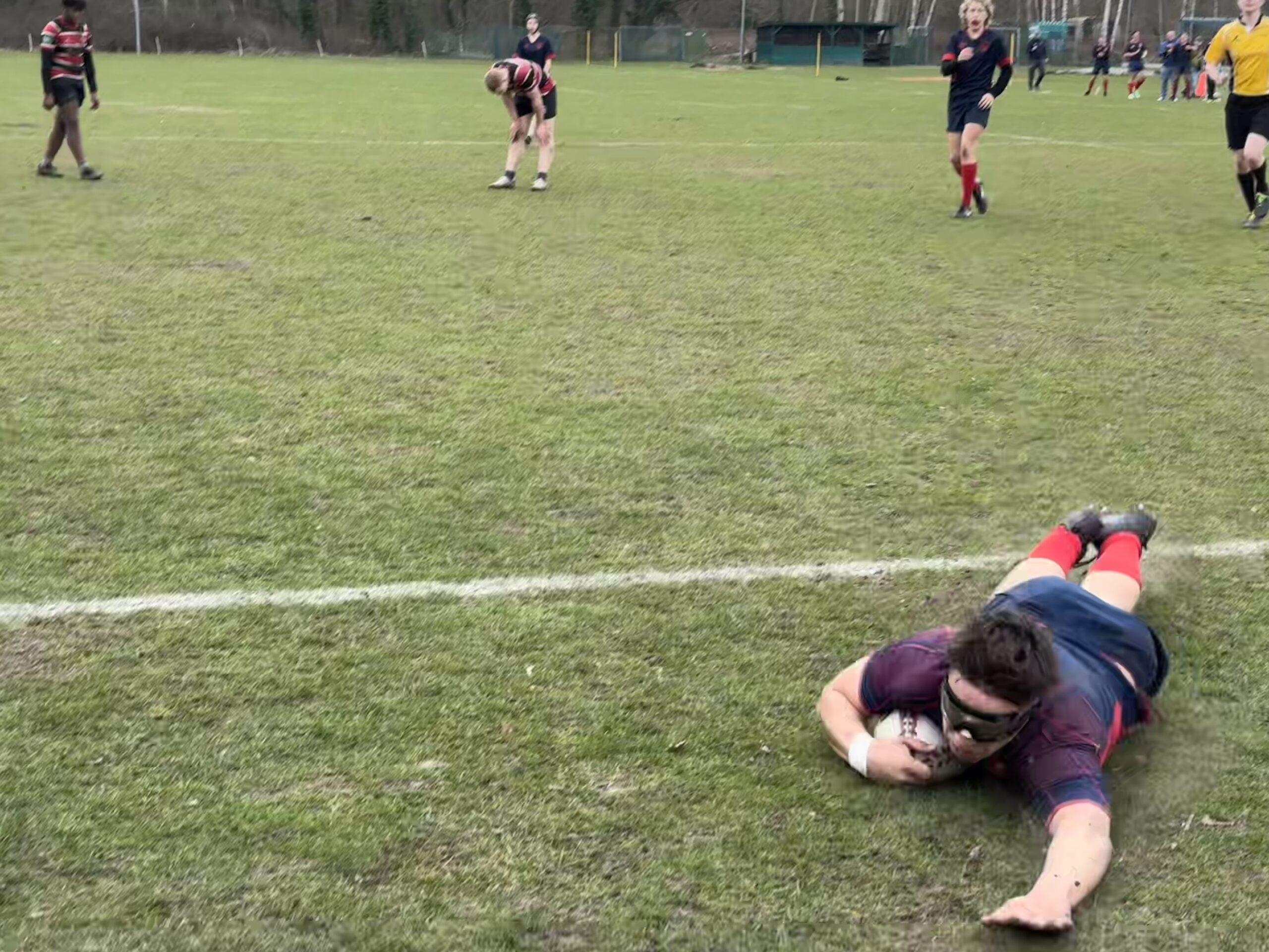 Mit Hessen wartete am zweiten Tag der Gruppenerste der anderen Gruppe. Entgegen der Hoffnung, an die Leistung gegen RBW anknüpfen zu können, gerieten unsere Rugger schnell in Rückstand und so waren die Gemüter beim 0:26 Halbzeitstand etwas ernüchtert. Was in der zweiten Halbzeit folgte, war eine Aufholjagd, die fast in der nächsten Überraschung geendet hätte. Nach drei unbeantworteten Versuchen wurde das letzte Anrennen der Spielgemeinschaft durch eine gelbe Karte und eine 2-Minuten Strafe gestoppt, mit der sich die Hessen dann in Überzahl über die Zeit retteten.