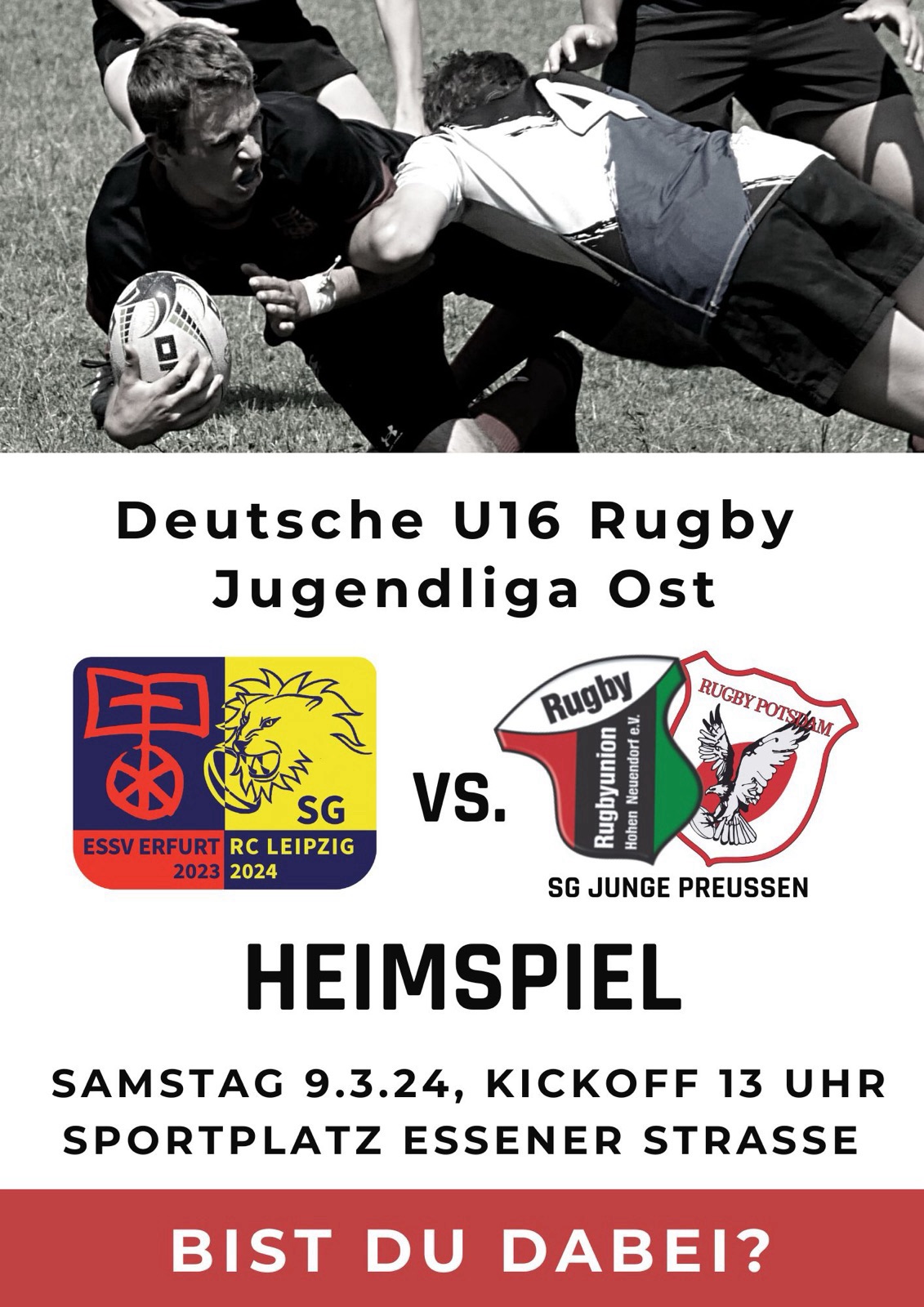 Am kommenden Samstag steigt nun endlich auch die U16 in den Spielbetrieb ein. In der Spielgemeinschaft der Mitteldeutschen Rugbyverbände treten sie in Leipzig gegen den Berliner RC an für eine erste Standortbestimmung.