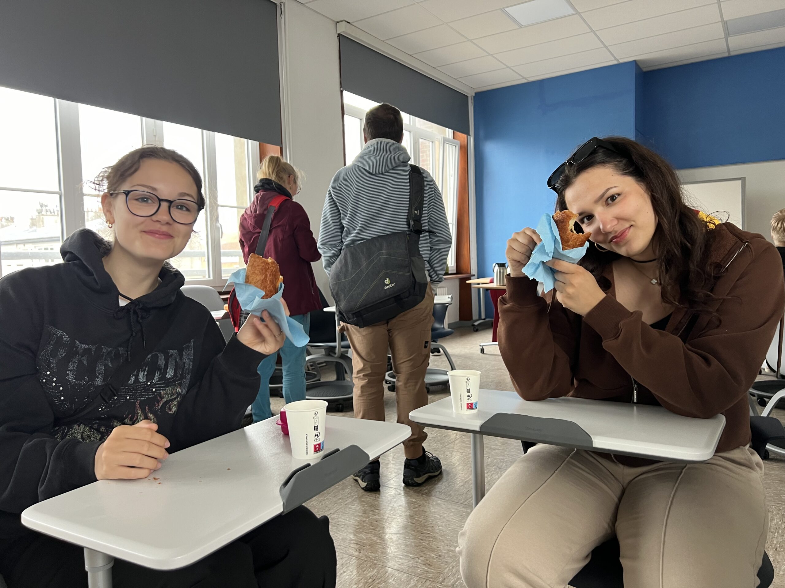 Auch am Dienstag besuchten wir wieder den Unterricht, bevor wir Desvres genauer kennenlernen durften. Wir waren in einer Boulangerie und im Maison de la presse, beides sehr bekannt aus unserem Französischbuch:) Anschließend haben wir alle zusammen sowohl typisch französisches als auch typisch deutsches Gebäck zubereitet. Dieses konnten wir auch gleich am Abend, bei einem Treffen mit den Eltern unsererAustauschpartner, genießen.