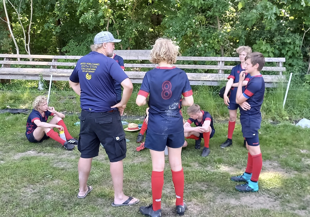 Nach dem dritten Versuch und der erneuten Erhöhung kurz vor Spielende ging die SG ESSV/RCL mit 19:15 in Führung und gab diese trotz letzter Angriffswellen des Gegners nicht mehr her. Mit dem Schlusspfiff war der erste Sieg in der Deutschen Jugendliga Ost perfekt und die Freude grenzenlos, natürlich erst nachdem den befreundeten Brandenburgern der gebührende Respekt gezollt wurde. Schon am 19.3.24 gibt es das nächste Aufeinandertreffen, wenn die Jungen Preußen zum ersten Heimspiel in Erfurt zu Gast sind, falls der Platz in der Essener Straße bis dahin bespielbar ist.