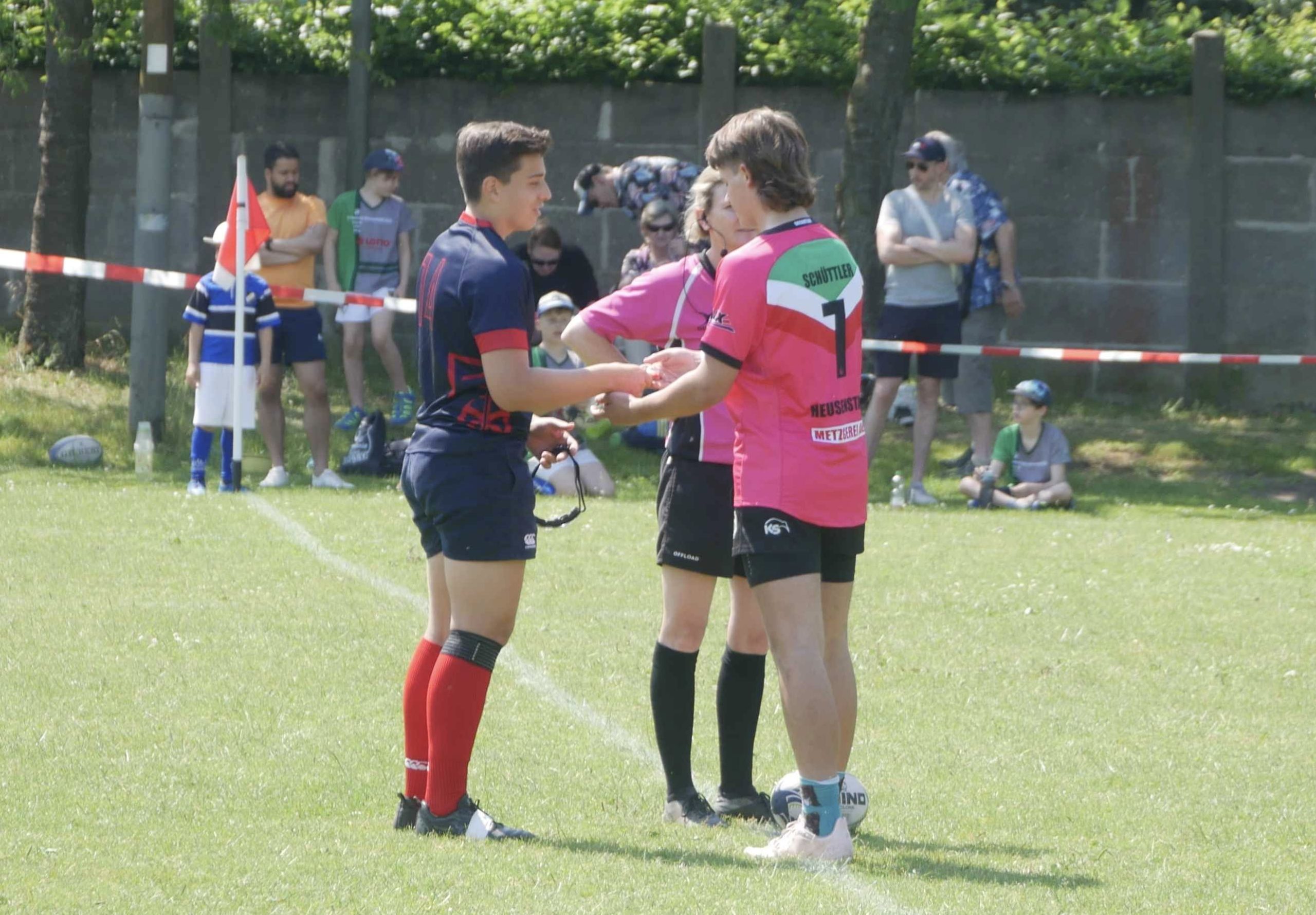 Die Trainer waren zur Halbzeit dementsprechend ernüchternd in ihrer Analyse, doch mit Blick auf den Lerneffekt und die Motivation auch für das nächste Spiel, sollte in der zweiten Halbzeit noch einmal der Fokus auf die Basics gelegt werden. Zumindest das gelang. Die eigenen Gedränge standen zunehmend sicherer, die Ballvortragenden wurden besser unterstützt und auch die Hintermannschaft konnte hier und da einige Meter machen und sich so aus dem Griff der Angreifenden lösen. So konnte das Spiel etwas offener gestaltet werden und den RK 03lern gelangen nur noch zwei weitere Versuche. Allerdings kam für die Spielgemeinschaft kein Punkt auf die Anzeigentafel und so ging auch das zweite Saisonspiel mit 0:36 deutlich verloren.