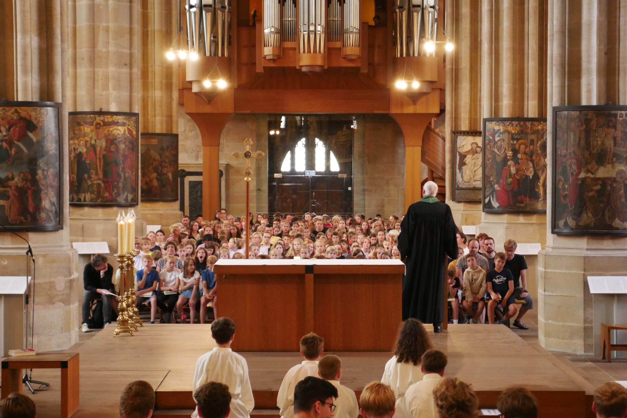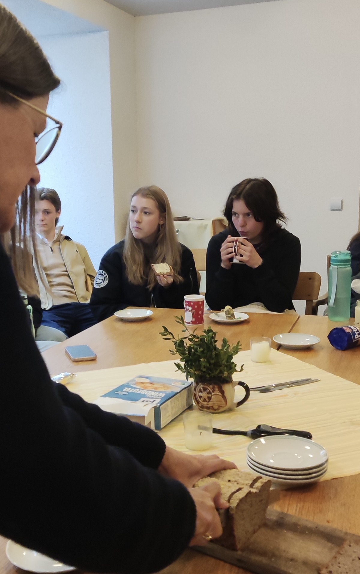 Vom 04.02-08.02.2024 haben sich 24 Schülerinnen und Schüler für Exerzitien wieder auf den Weg in das Benediktinerkloster in Nütschau begeben, um einen Blick auf sich selbst und das eigene Leben zu werfen. Das Aussteigen aus den Routinen des Alltags, indem die Perspektive gewechselt und etwas Abstand von der Schule gewonnen wird, steht dabei im Vordergrund. Die Teilnahme an den Stundengebeten (ora), das Mittagessen im Schweigen, die Arbeit im Garten des Jugendhaus St. Benedikt (labora), das Gespräch mit den Brüdern vor Ort, aber auch das gemeinsame Musizieren, Reden, Spielen und Lachen sind das, was diese Tage ausmacht. Besonders die Möglichkeit, Fragen zum Leben im Kloster und zur Berufung im Leben zu stellen, war bei den Schülerinnen und Schülern sehr gefragt. So stand Bruder Norbert, der nicht wesentlich älter als dien Schülerinnen und Schüler selbst ins Kloster eingetreten ist, Rede und Antwort und zeigte, dass man im Leben immer Entscheidungen treffen muss, ob für ein Studium, einen Beruf oder einen ganzen Lebensweg.