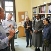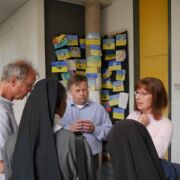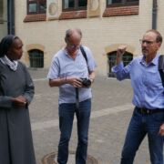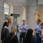 Nach der besonderen Begrüßung der neuen 5. Klassen, den Worten des Schuleiters Dr. Voigt und dem Abschluss des Gottesdienstes mit Dank an alle Beteiligten, zogen die beiden Zelebranten und die Ministrant*innen in ihren nigelnagelneuen Gewändern aus und Schüler und Lehrer machten sich auf den Weg zurück zur Schule, um die erste Woche mit neuen Impulsen für das Schuljahr zum End zu bringen.