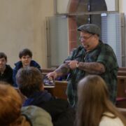 Zeitzeuge Frank Fritsch berichtet zum 40jährigen Jubiläum der ökumenischen Friedensdekade aus seinen friedensbewegten Anfängen in der DDR und seinen Aktivitäten an unserer Schule.