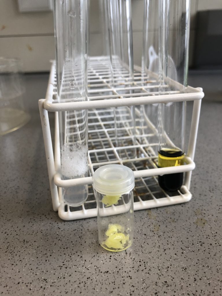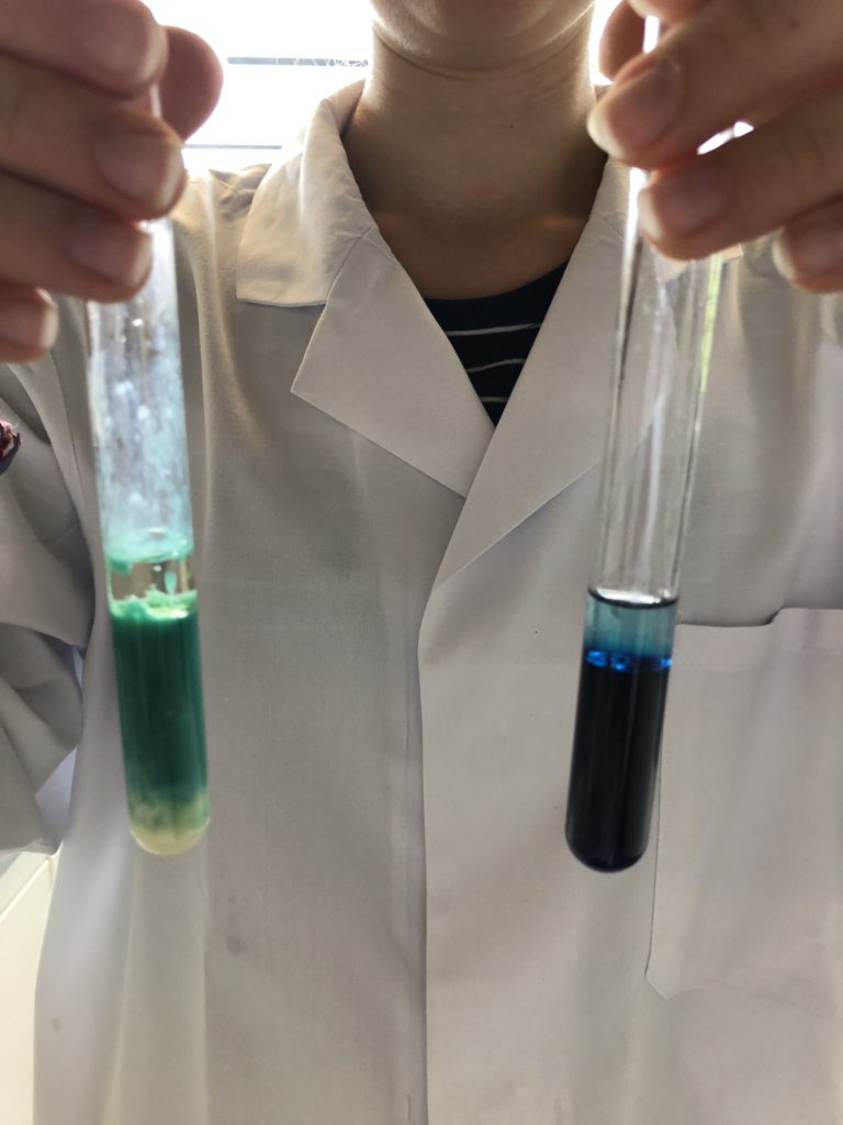 Tenside und Waschmittel zu untersuchen, klingt zunächst eher langweilig und uninteressant. Was soll schon spannend an ein paar Reinigungsartikeln sein? Die Exkursion zeigte jedoch, dass mehr hinter diesen Fleckentfernern steckt. Nachdem uns anschaulich die Wirkung von Tensiden, Seifen und Waschmitteln erklärt wurde, konnten wir auch selbst im Labor einige Versuche starten. Dabei stellten wir nicht nur selbst Seife her, sondern produzierten zudem einen magentafarbenen, milchartigen Schaum und brachten Lösungen zum Leuchten. Auch wenn nicht alle Versuche klappten und wir viel Zeit, damit verbrachten, auf eine Reaktion zu warten, konnten wir gemeinsam einen sehr amüsanten und lehrreichen Tag verbringen. Außerdem beantwortete uns eine Studentin, die selbst zu diesem Zeitpunkt Chemie und Spanisch auf Lehramt studierte, jegliche Fragen rund um ein Chemiestudium.
