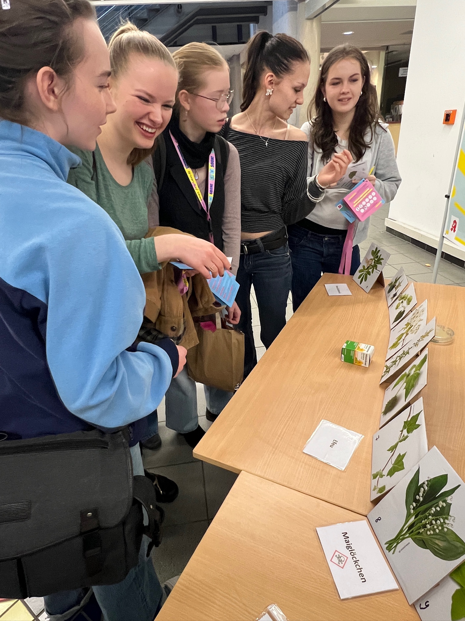 Ein Bus holt uns ab, begleitet von Guides in auffallend farbigen Jacken mit markanten Slogans auf dem Rücken, die uns in allen Farben und Varianten auf Beuteln, Bleistiften und Aufklebern über den Tag begleiteten.  Ein umfangreiches und abwechslungsreiches Programm mit zahlreichen Infoständen, Aktivitäten und praktischen Versuchen erwartete uns. Der Mensabesuch verschaffte uns eine Pause und einen Einblick ins studentische Leben in Jena.