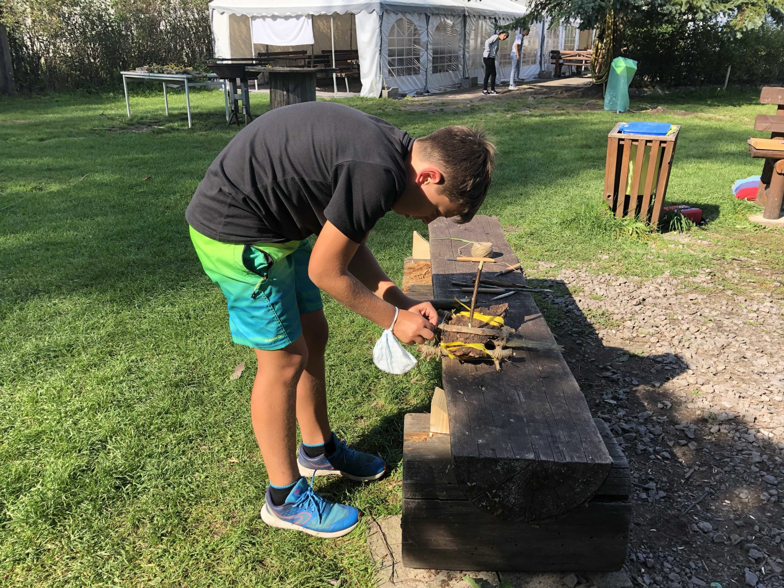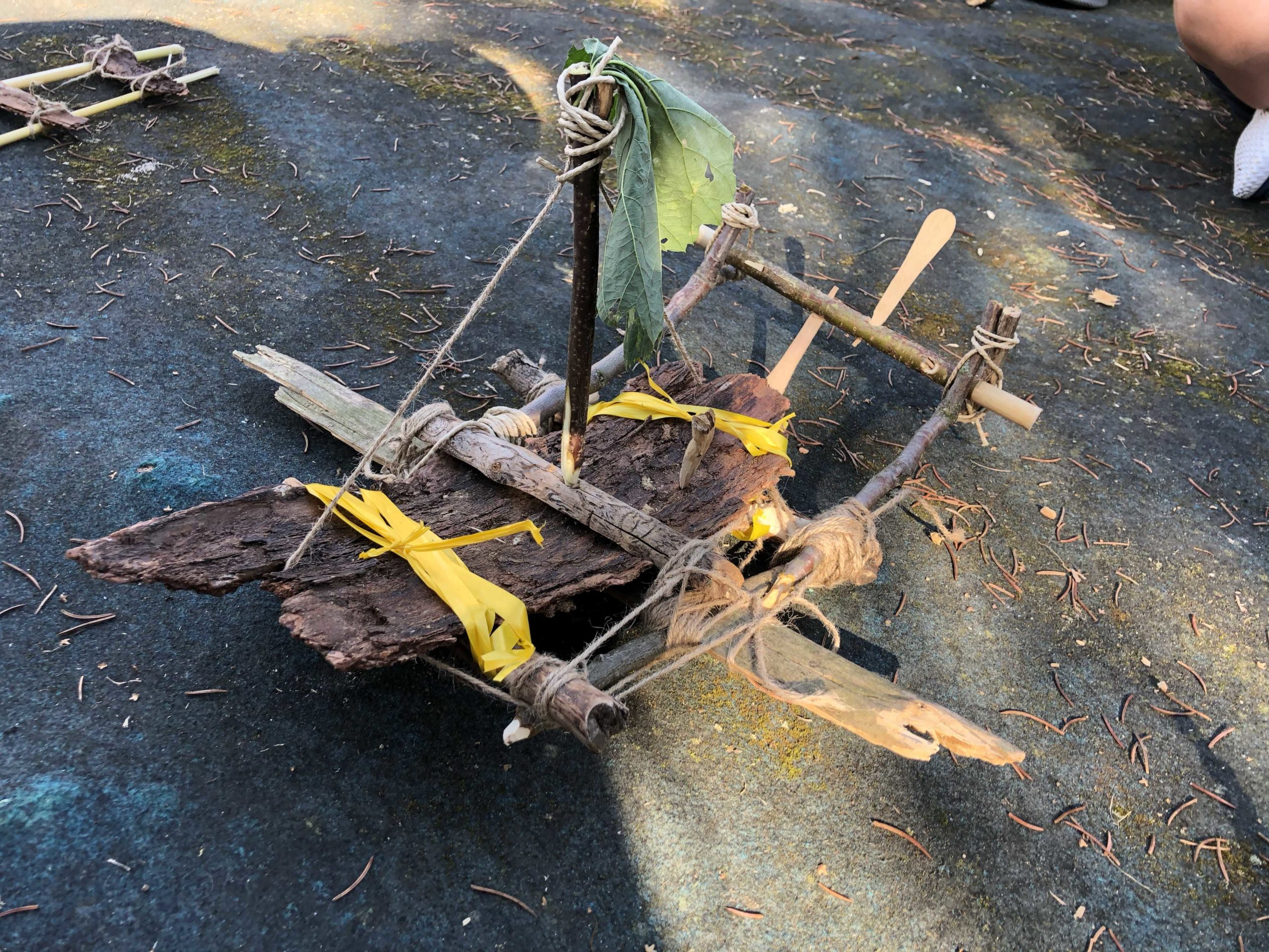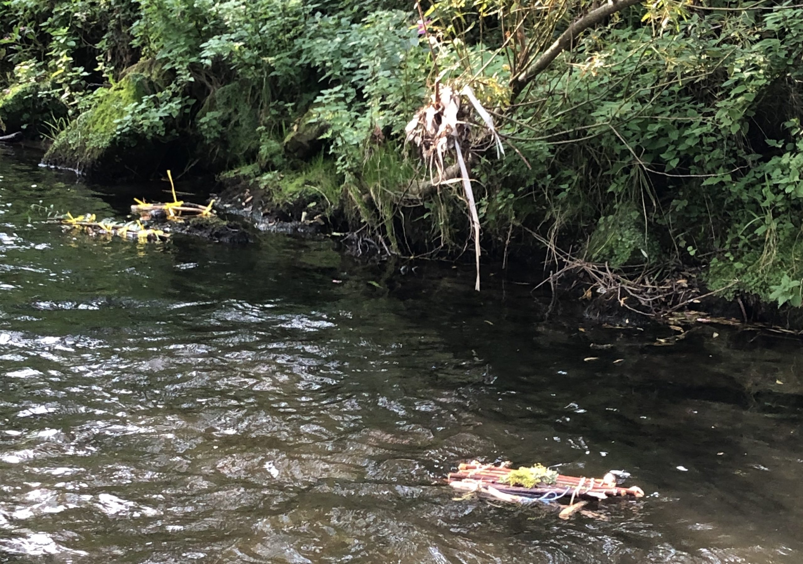 Die direkt am Gelände angrenzende Ilm diente nicht nur der gelegentlichen Abkühlung bei hochsommerlichen Temperaturen sondern war zudem ideales Testgelände für die selbstgebauten Flöße. Das Material dafür hatten sich die Schüler im Vorfeld im Wald zusammengesucht.