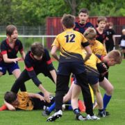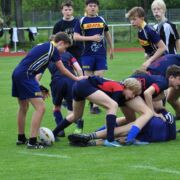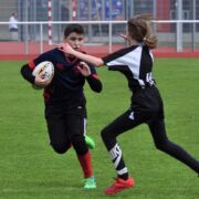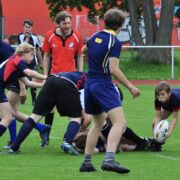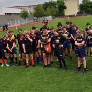 Für die U14 war das Heimturnier in doppelter Hinsicht von Bedeutung. Zunächst absolvierten sie ein packendes Ligaspiel in der 7er Variante des Sport. Gegen starke Leipziger, die von Gera und Jena unterstützt wurden lagen sie zur Halbzeit noch 0:12 zurück, fanden dann aber besser ins Spiel und nutzten ihre Chance zum letztlich gerechten Ausgleich. In der Tabelle liegen die Erfurter nun in Führung, da der RC Leipzig nur mit einer halben Mannschaft angereist war und somit auch nur halbe Turnierpunkte einstreichen konnte. In den ausstehenden Turnieren gilt es jetzt, diese Position zu verteidigen.