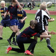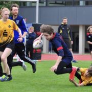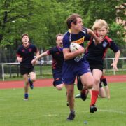 Die U12 wurde dominiert von den Spielern unseres Schulsportvereins. Mit zwei überlegenen Siegen mit jeweils 9 Versuchen, obwohl sie durchweg in Unterzahl gespielt haben, ließen sie nichts anbrennen und nutzten ihre physische und technische Überlegenheit gegen Dresden sowie die Spielgemeinschaft aus Leipzig und Gera. Mit diesen Siegen behaupteten sie nach nunmehr drei Saisonturnieren auch souverän ihre Spitzenposition in der Tabelle.