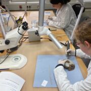 Wir durften originale Artefakte aus den Zeiten des Konzentrationslagers Buchenwald restaurieren, unter anderem eine Schüssel und verschiedene Gegenstände aus dem medizinischen Bereich. Im Archiv der Gedenkstätte Buchenwald und in der Bibliothek recherchierten und beschäftigten wir uns mit Lebensläufen verschiedener Häftlinge, unter anderem Bruno Apitz, dem Autor von “Nackt unter Wölfen”, und Marie Kos. Wir konnten so einen sehr detaillierten Einblick in ihre Lebensläufe und Geschichten erlangen, auch über die Zeit nach der Befreiung.