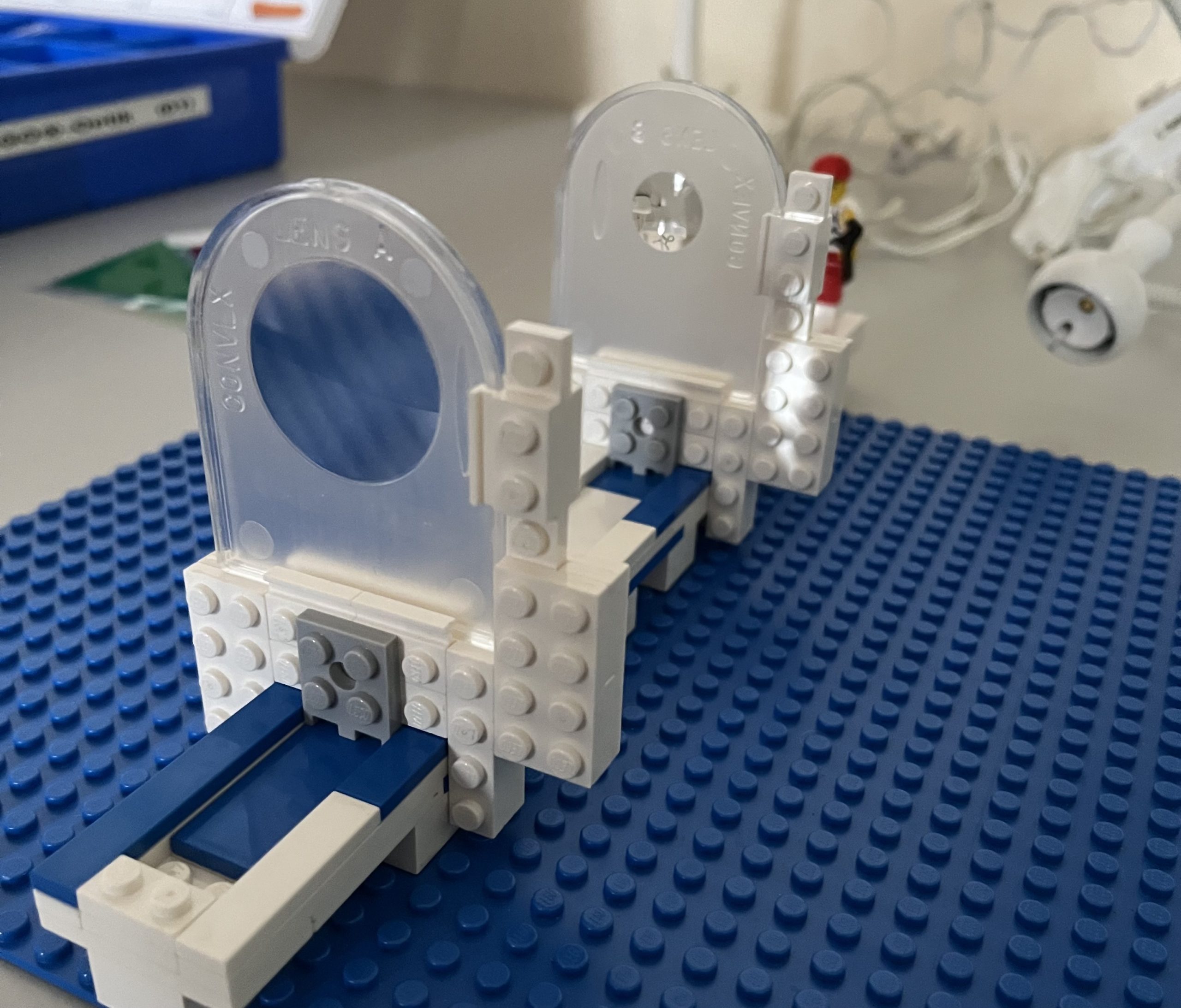 gewartet. Wir waren nur zwei Minuten zu spät. als wir ankamen. In der Uni hatten wir eine kurze Einweisung bekommen. Mit Licht und Lego haben wir Experimente gemacht. Nik und Phillip haben uns an dem Tag super begleitet. Auf dem Rückweg haben wir uns schnell noch eine Stärkung in der Goethe Galerie geholt. Jetzt