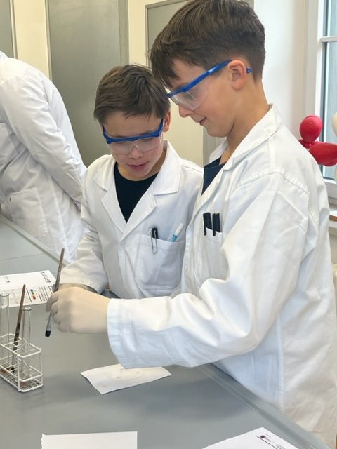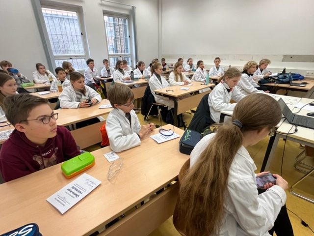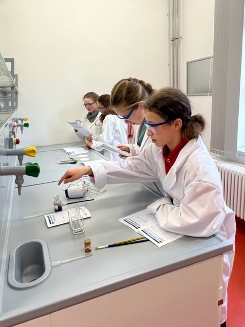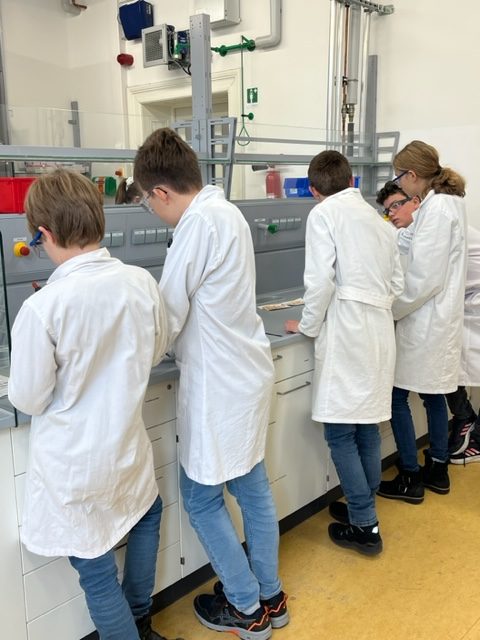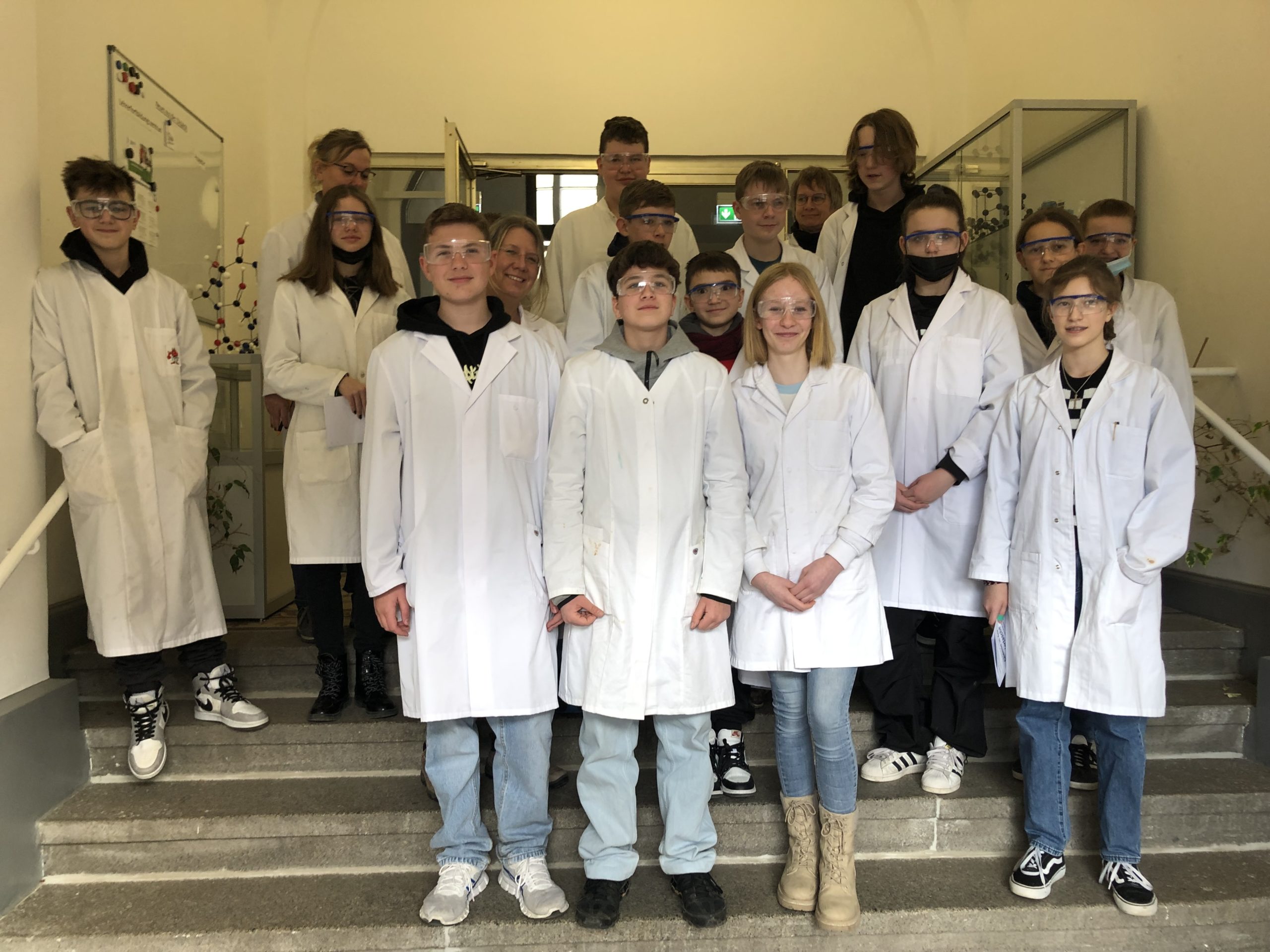 In den letzten Wochen waren alle 7. Klassen zweimal in Jena, um sowohl in der Physik, als auch in der Chemie die Einrichtungen der Uni Jena zu nutzen für praxisnahe Experimente. Betreut von den Studenten aus den jeweiligen Didaktikbereichen arbeiteten die Schüler*innen z.B. mit Gegenständen aus ihren Federmappen, beobachteten die chemische Reaktionen und notierten die Ergebnisse. Im Physiklabor waren beim Versuchsaufbau Fertigkeiten im Umgang mit Lego gefragt, bevor die optischen Experimente durchgeführt werden konnten.