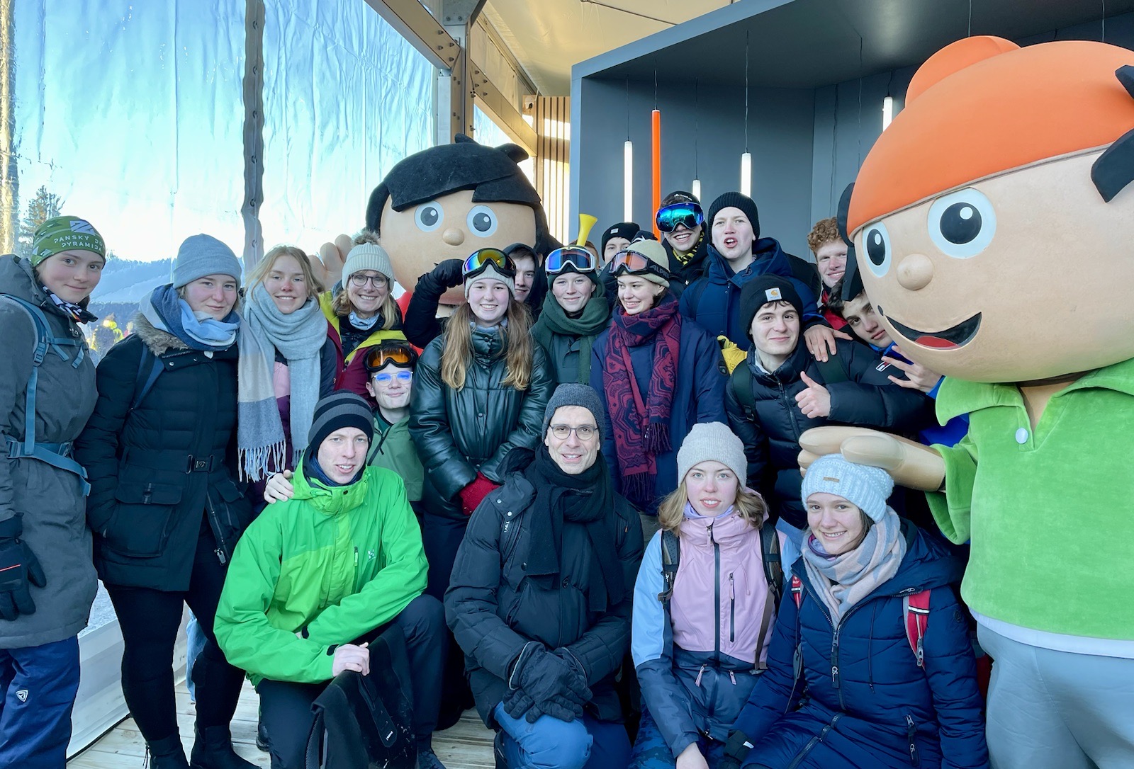 Am 25.02.2023 ging es dann auch für die 8. Klassen los. Die Klassenstufe hatte das Glück, dieses Jahr ihr Skilager nachholen zu können. So starteten 64 Schüler um 23.00 Uhr am Domplatz mit dem großen Doppeldeckerbus mit Skianhänger. Nach der nächtlichen Busfahrt (ohne viel Schlaf) ging es dann direkt auf die Piste. Trotz großer Müdigkeit, schwierigem Neuschnee und starkem Wind verlief der Tag reibungslos. Am Ende des Tages fielen alle in die Betten und konnten ihren wohl verdienten Schlaf nachholen.