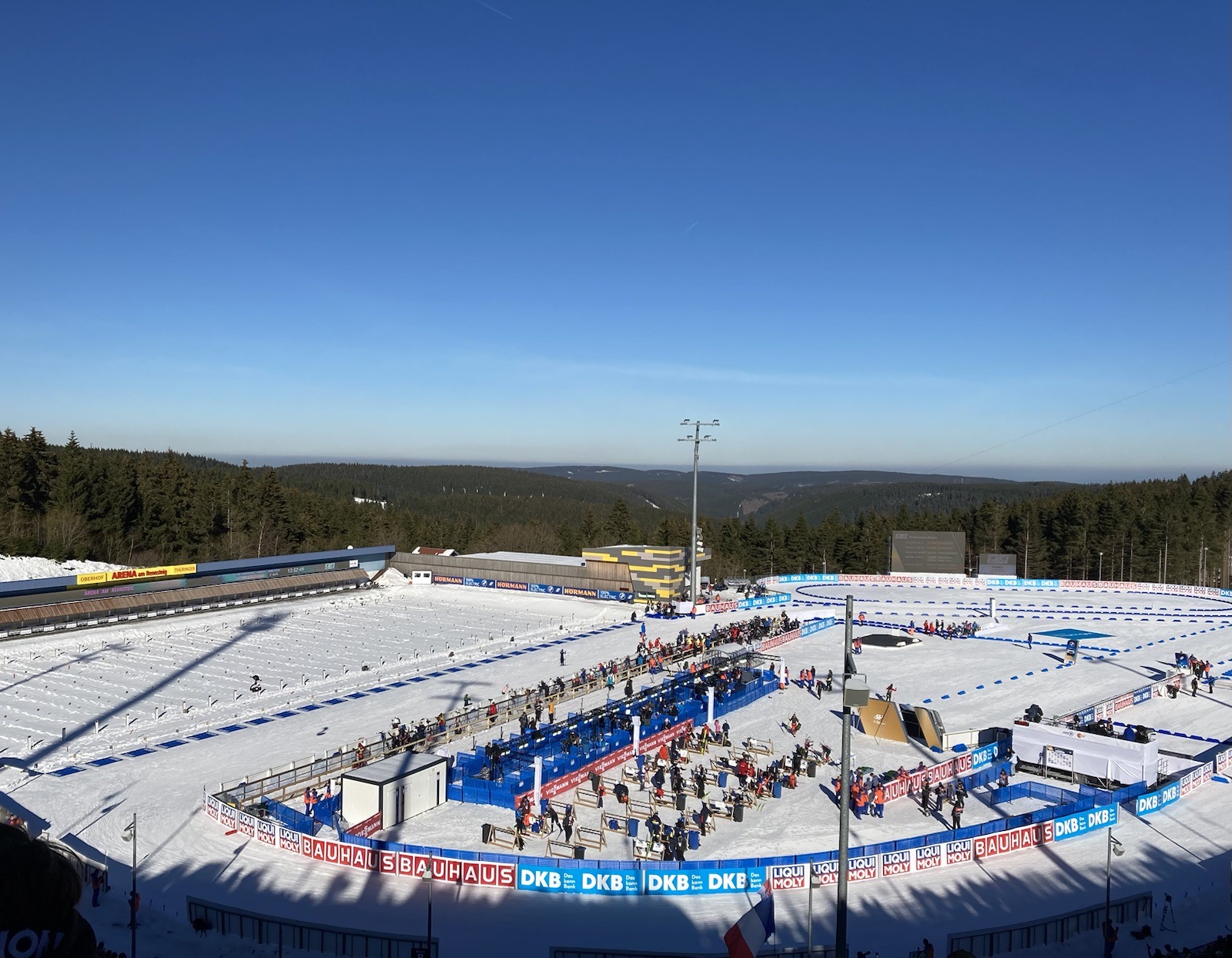 Am ersten Tag des Weltcups in Oberhof am 8. Februar verbrachten die Klassen 11a und 11c  ihren Winterwandertag bei der Biathlonweltmeisterschaft in Oberhof. Der Thüringer Skiverband organisierte im Rahmen des Projekts „Jugend trifft Biathlon“ für tausende Schüler einen Ausflug in das Biathlon-Mekka des Thüringer Waldes. Bei Kaiserwetter sahen insgesamt über 19000 Zuschauer mit der Mixed-Staffel einen spannenden Wettkampf rund um den legendären Birxsteig und die kleine Sägespänerunde. Auch wenn die deutsche Staffel keinen guten Tag erwischte, wir jubelten und spornten an mit Pfeifen, Tröten und Kuhglocken. Der Tag war ein großes Erlebnis für Schüler und Lehrer. Wir bedanken uns für die Top-Organisation des Thüringer Skiverbands.
