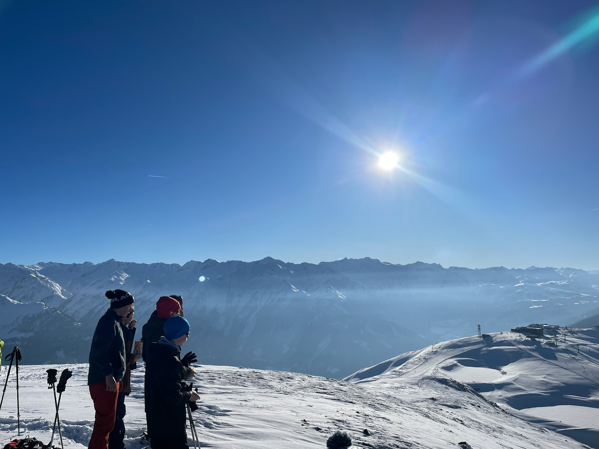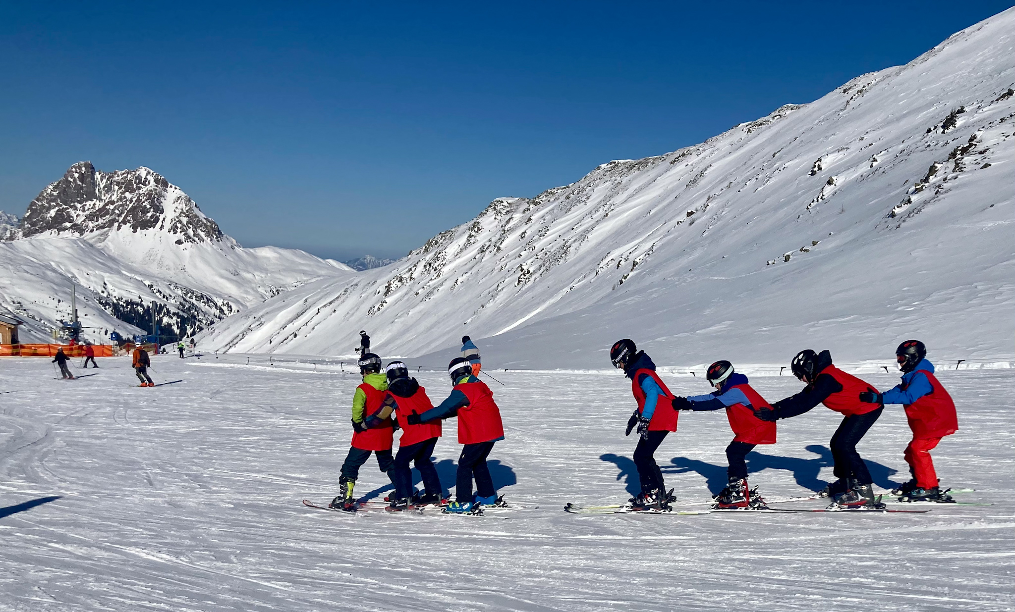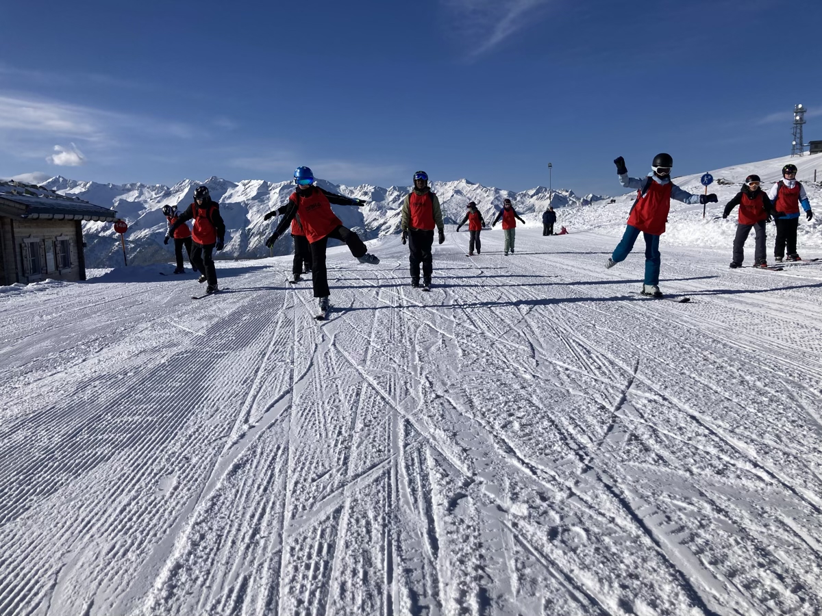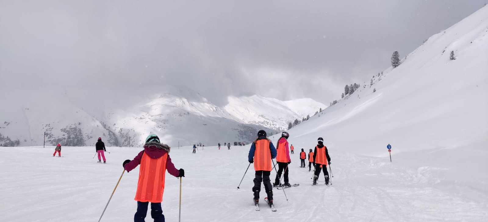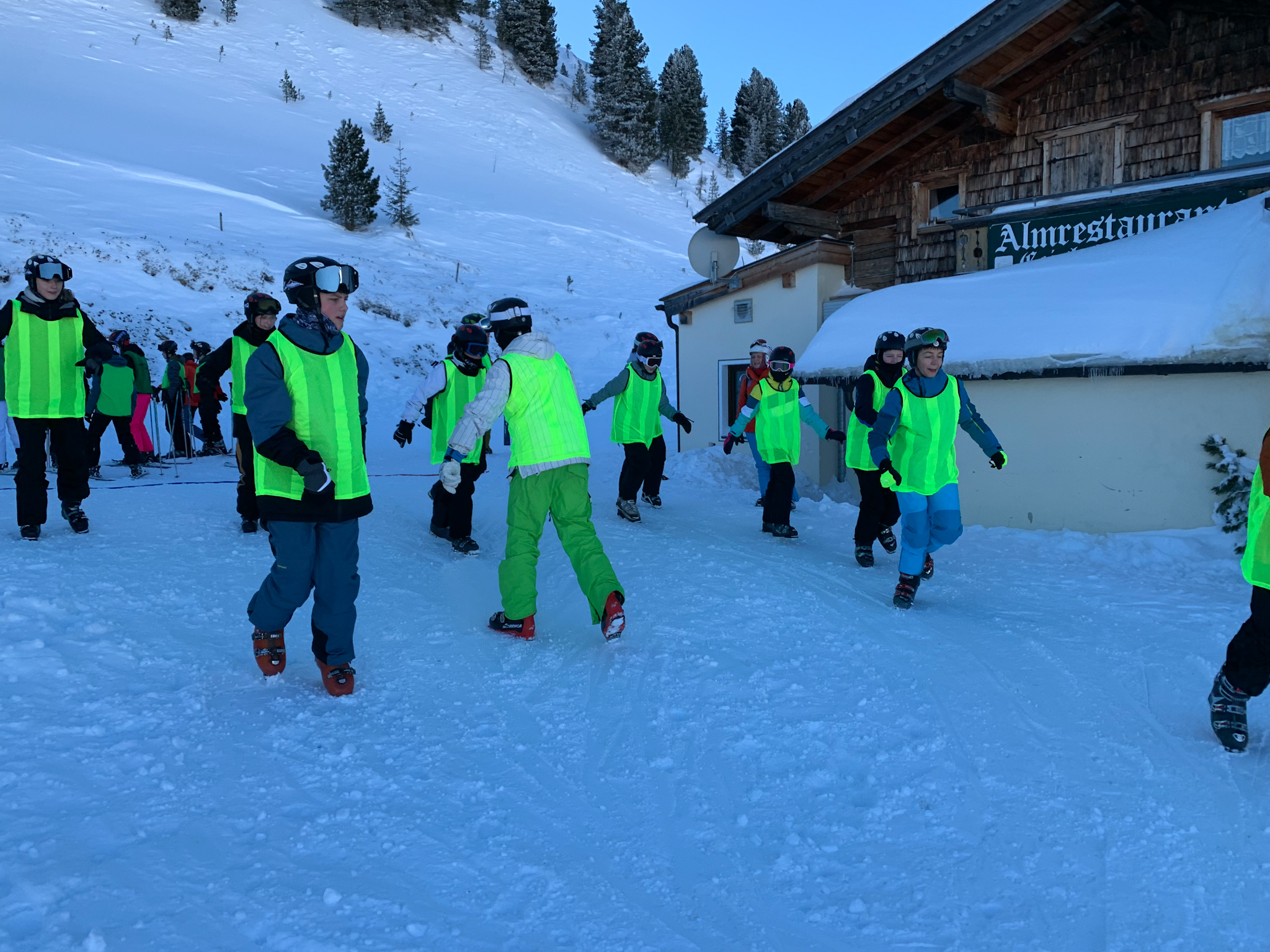 Eine überaus positive Bilanz lässt sich nach der ersten Skilagerwoche mit den 7. Klassen ziehen. Fantastisches Wetter, perfekte Schneebedingungen, fast 40 Totalanfänger*innen, die nach einer Woche überwiegend sicher die Piste herunter kommen und viele weitere Skifahrer*innen, die ihre Techniken verfeinert haben und elegante Spuren auf der Piste zogen.