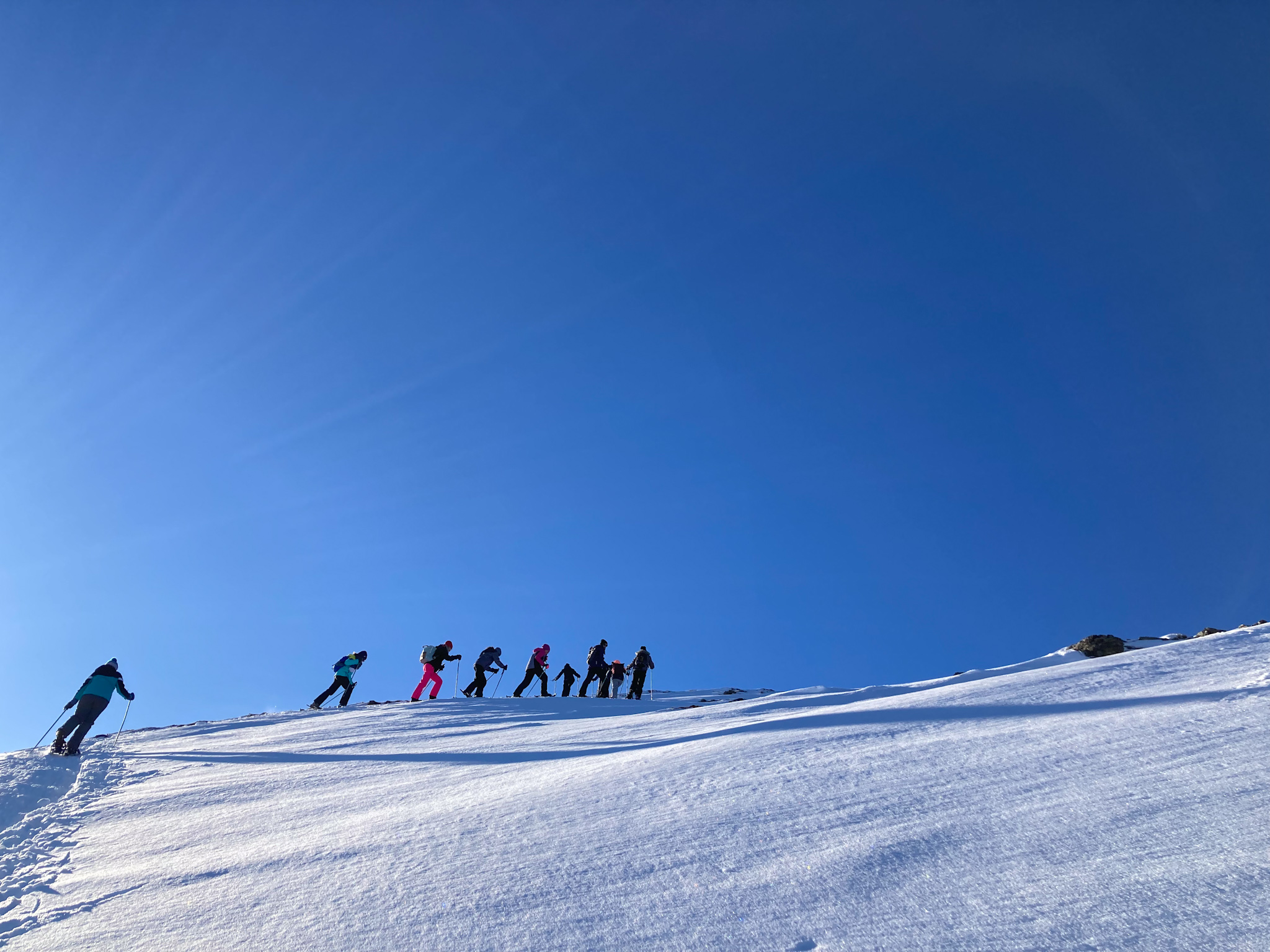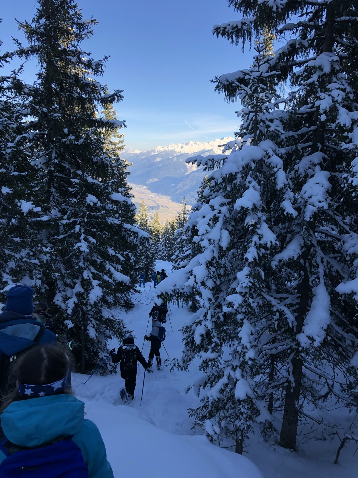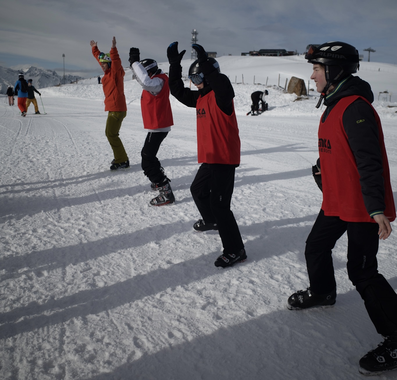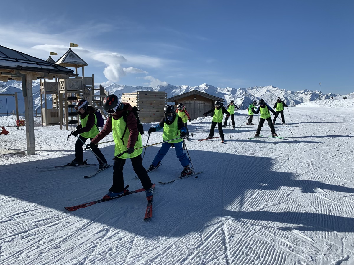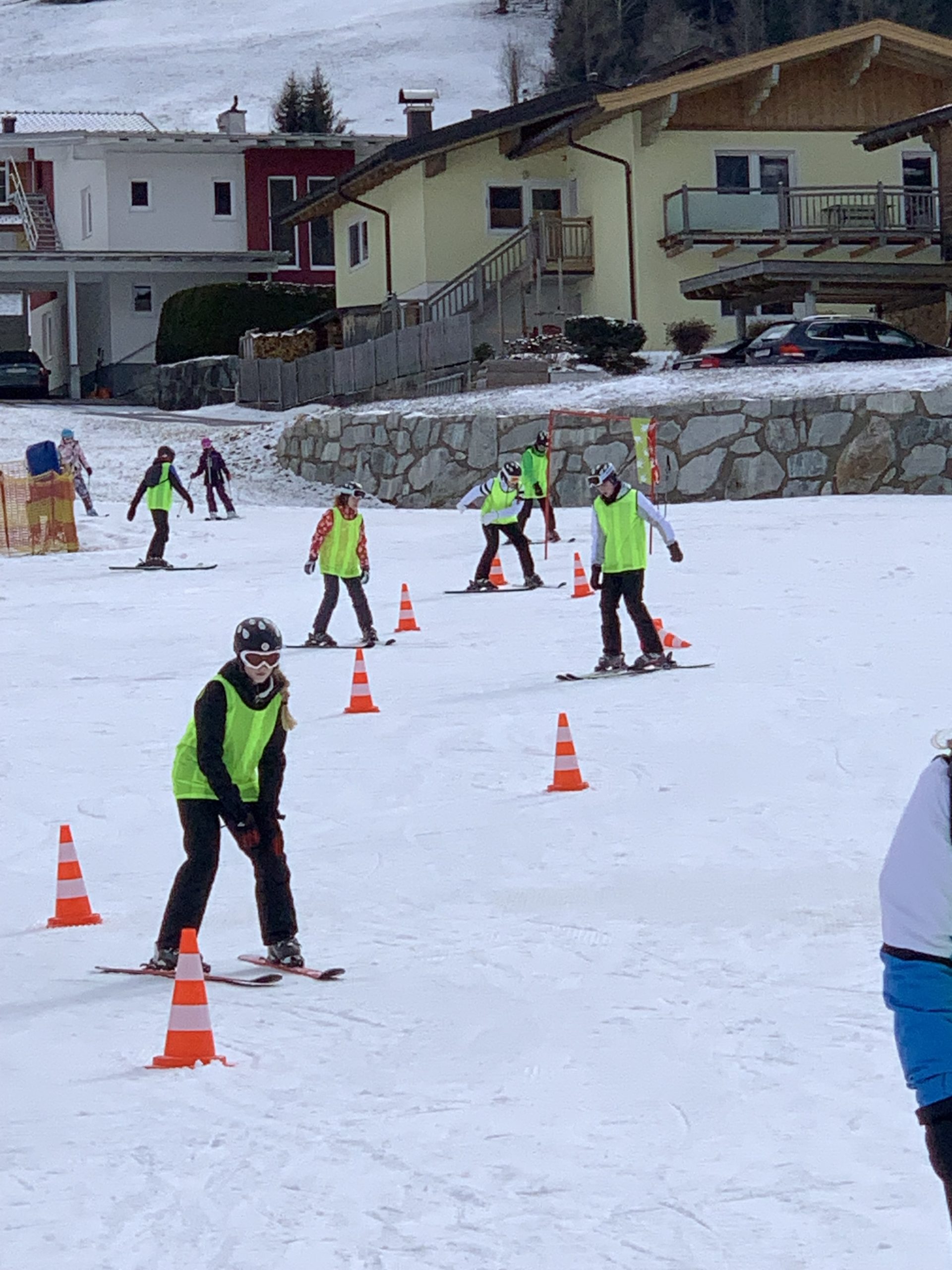 Eine überaus positive Bilanz lässt sich nach der ersten Skilagerwoche mit den 7. Klassen ziehen. Fantastisches Wetter, perfekte Schneebedingungen, fast 40 Totalanfänger*innen, die nach einer Woche überwiegend sicher die Piste herunter kommen und viele weitere Skifahrer*innen, die ihre Techniken verfeinert haben und elegante Spuren auf der Piste zogen.