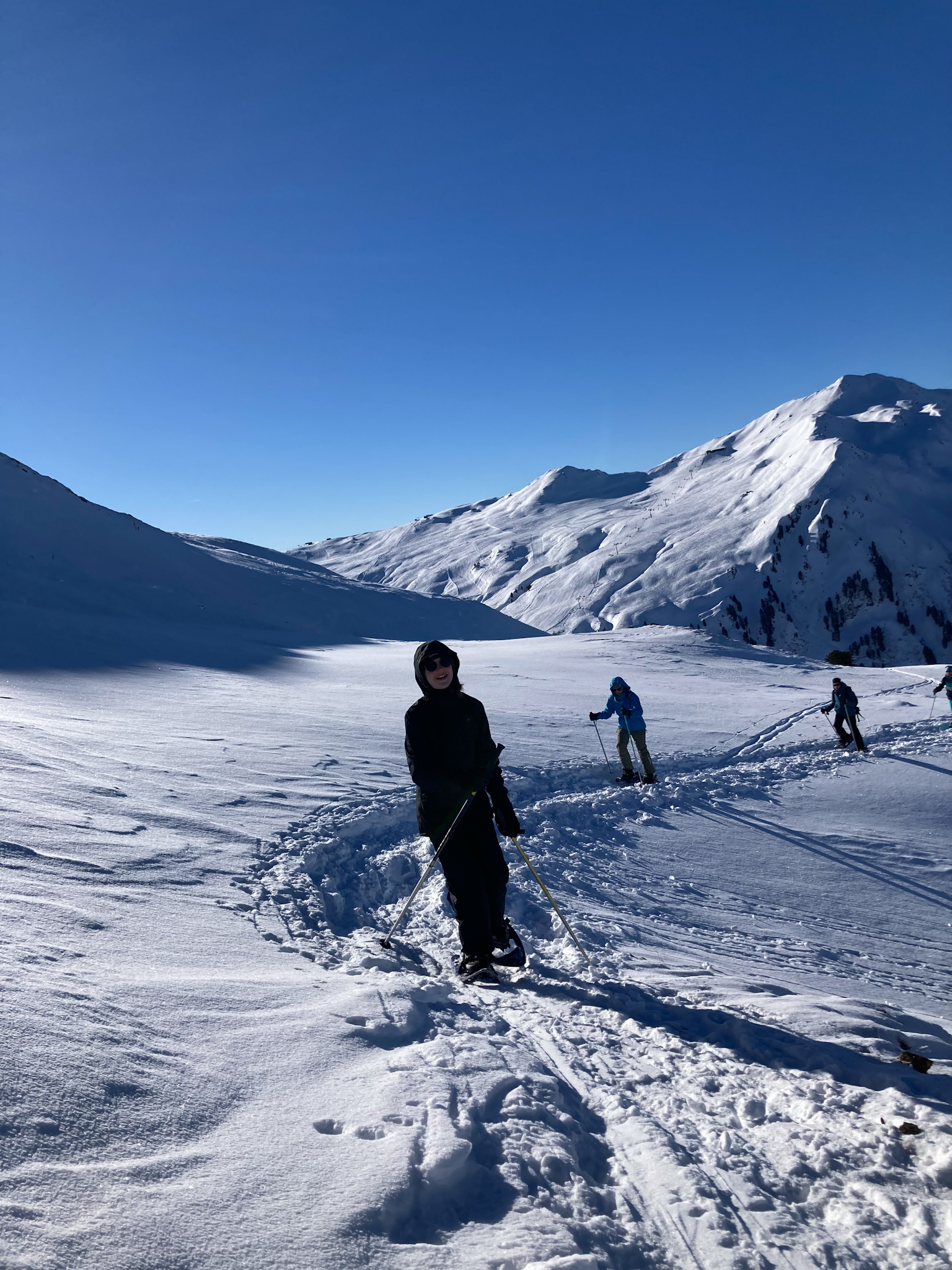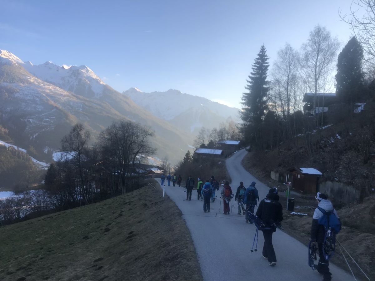 Ausgeschlafen und mit mehr Energie ging es am zweiten Tag wieder auf die Piste. Zur Mittagszeit trafen sich alle Gruppen um eine Pause zu machen und ein warmes Süppchen zu schlürfen. Auch die Anfänger konnten am darauffolgenden Tag schon auf die Pisten im Skigebiet der Wildkogel-Arena. Nachmittags teilten sich die Gruppen und einige gingen auf eine abenteuerliche Schneeschuhwanderung, von der sie erschöpft aber glücklich wiederkamen. Abends trafen sich alle im Gemeinschaftsraum und schauten sich die ersten Erinnerungsfotos an. Am 3. Skitag gab es eine weitere etwas leichtere Schneeschuhwanderung auf den Wildkogel, wo der Wind dafür diesmal ordentlich blies. An diesem Abend bereiteten die Schüler Spiele für den bunten Abend vor, die sie erklärten und dann mit den Lehrern zusammen spielten. Am letzten Tag meisterten viele Gruppen auch noch eine schwarze Piste und am Nachmittag wurde für die Abreise gepackt. Freitags fuhr der Bus planmäßig um 10:00 Uhr los und während der Busfahrt wurde sich ausgiebig über das Skilager unterhalten. Nach einer langen und aufregenden Woche fielen alle ihren Familien glücklich in die Arme.